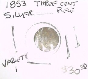 1853 SILVER THREE CENT PIECE VARIETY 1 RED BOOK VALUE IS $30.00 *EXTREMELY RARE U.S. COIN*!!! ***Coin, Currency & All Items Listed in this auction - Grades, Conditions and Values are not Safe Deposit Coins LLC Responsibilty. Grades, Condition and Values are determined by Consigner(s) & Buyers ONLY***