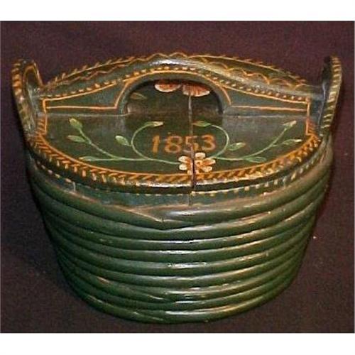 DATED 1853 SWEDISH GROT BOX. THIS IS A REALLY NICE PIECE OF FOLK ART.. DARK GREEN IN COLOR. COMES FROM A PRIVATE OWNER NEAR WESTBY WISCONSIN.GUARANTEED OLD AND ORIGINAL.