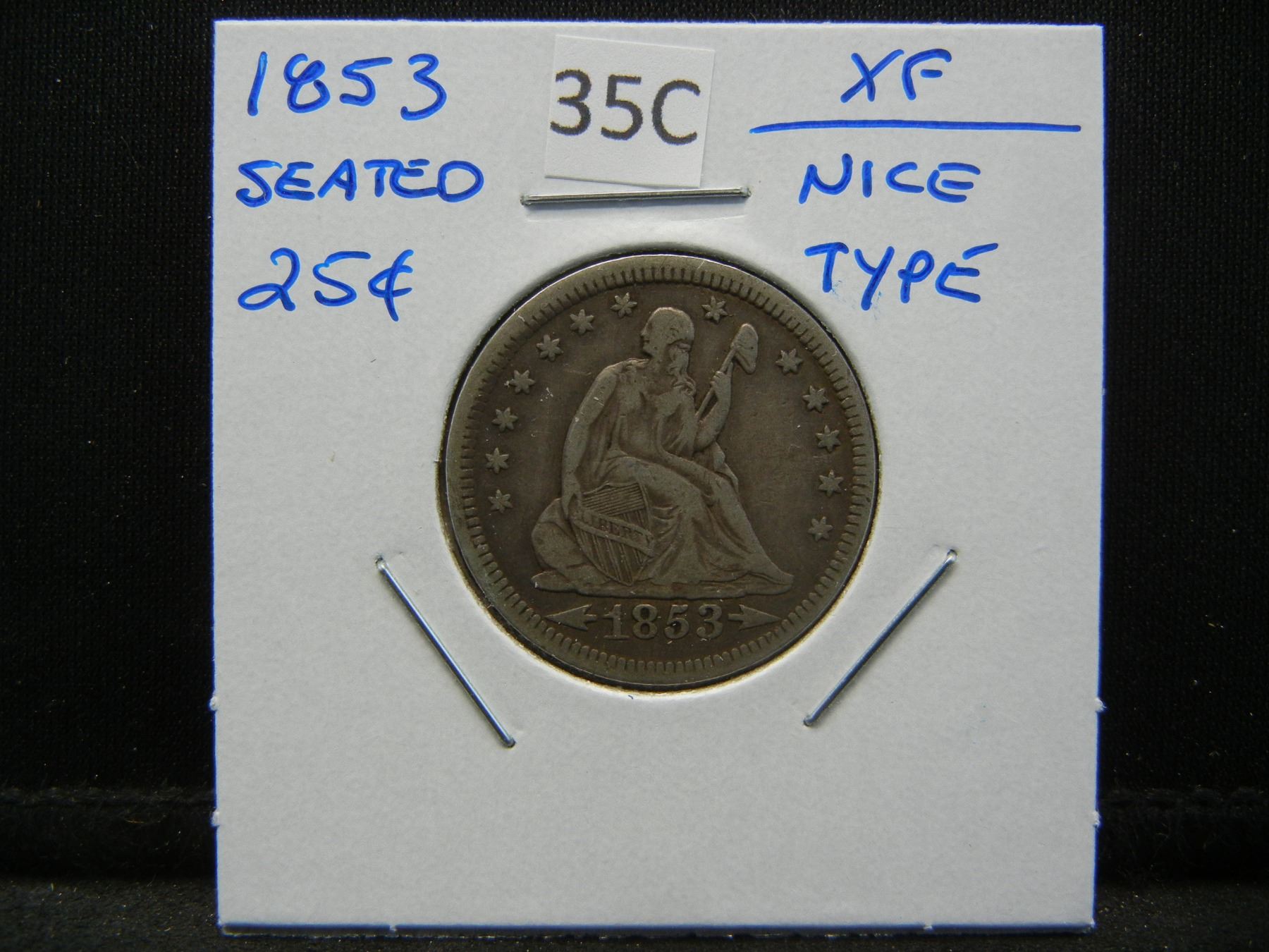 1853 Seated 25c. XF. Nice Type.