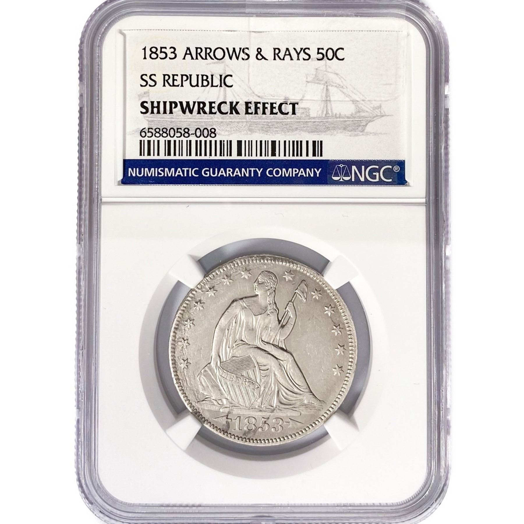 1853 Seated Lib. 50C NGC Shipwreck SS Rep Bx Set