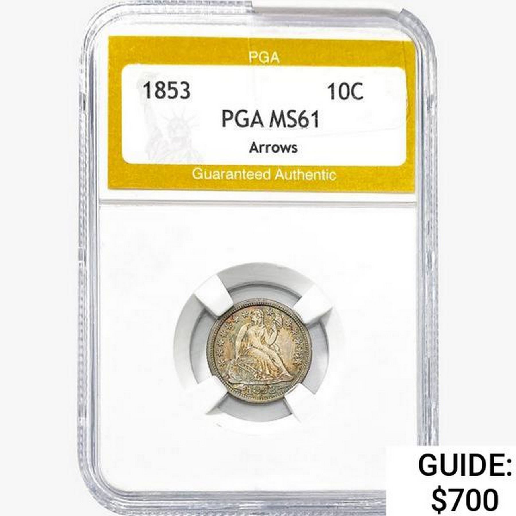 1853 Seated Liberty Dime PGA MS61 Arrows