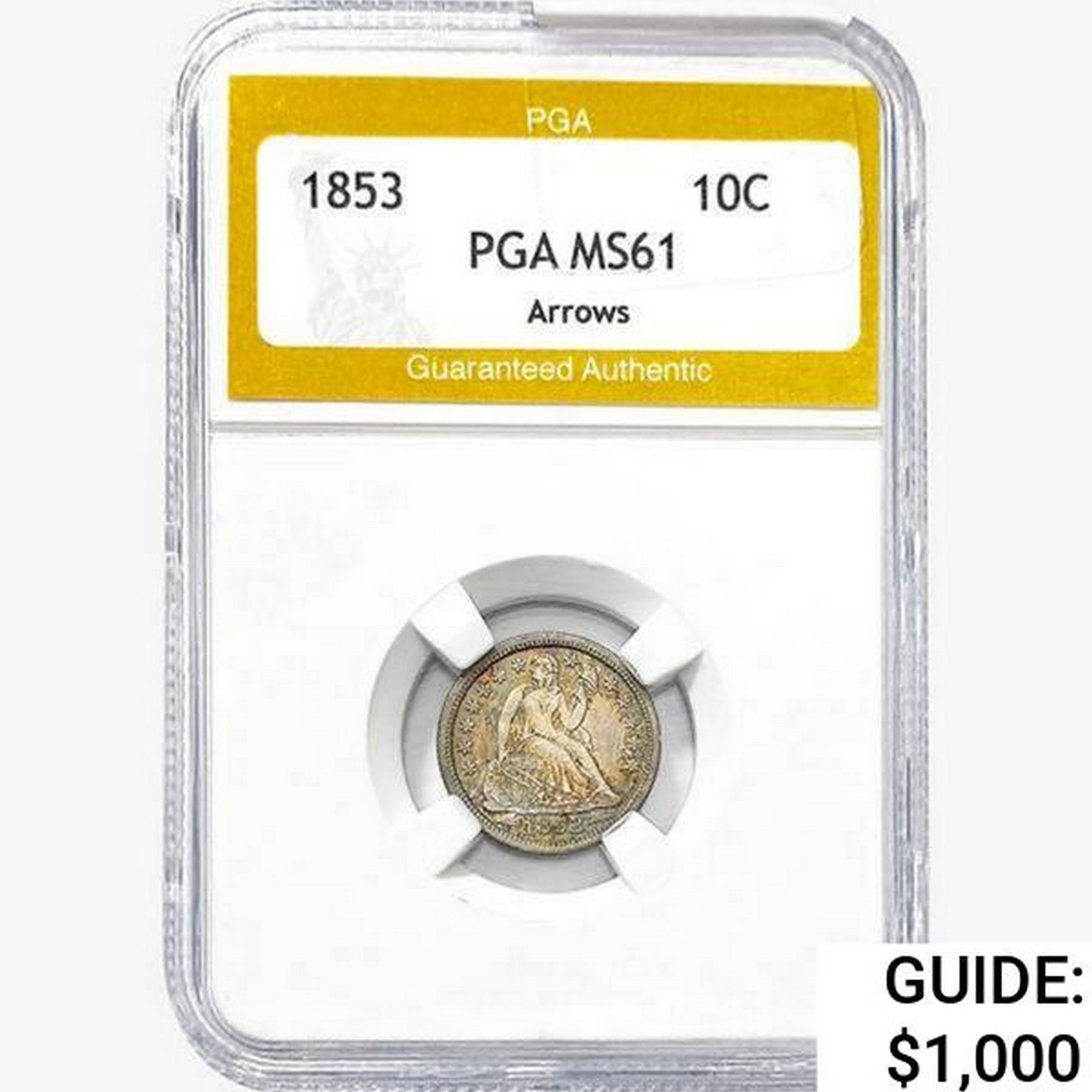 1853 Seated Liberty Dime PGA MS61 Arrows
