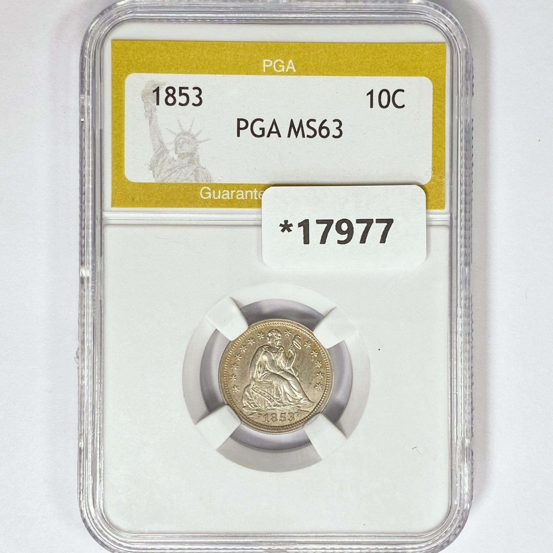 1853 Seated Liberty Dime PGA MS63 Arrows
