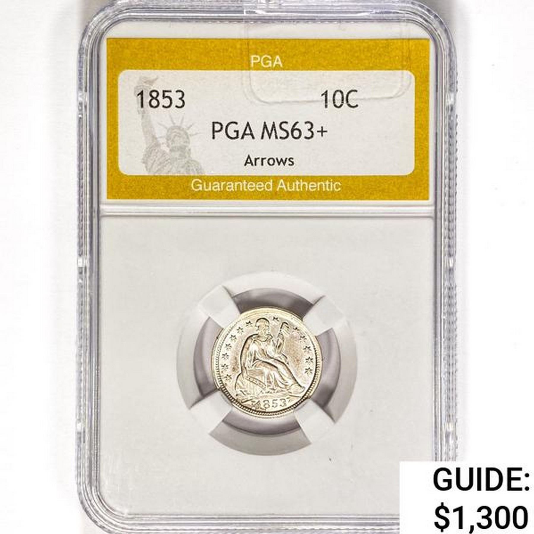 1853 Seated Liberty Dime PGA MS63+ Arrows