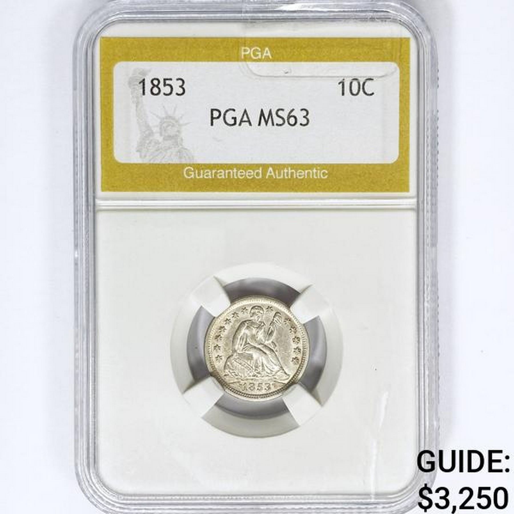 1853 Seated Liberty Dime PGA MS63