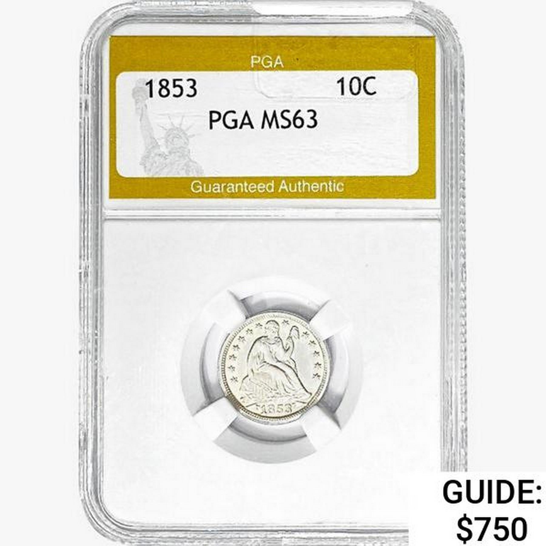 1853 Seated Liberty Dime PGA MS63