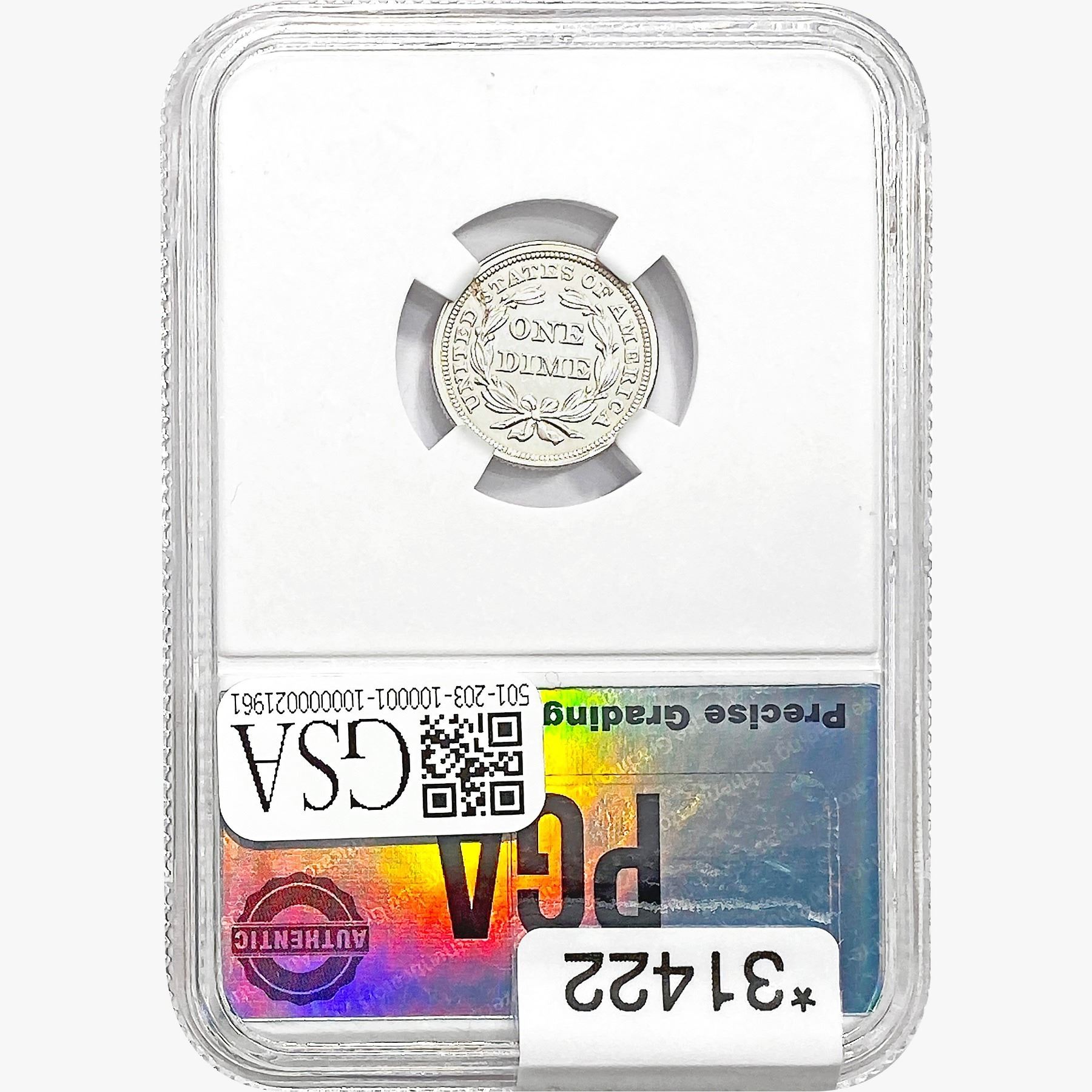 COINS AND CURRENCY LISTED IN GSA’S CATALOG AS GRADED AND ENCAPSULATED BY PCGS, NGC, ANACS, ICG, PCGS CURRENCY, PMG, PCGS BANKNOTE GRADING, CMC OR ANY OTHER THIRD-PARTY GRADING SERVICE ARE LIKEWISE SOLD “AS-IS” EXCEPT AS EXPRESSLY SET FORTH HEREIN. ALL THIRD-PARTY GRADING SERVICE GUARANTEES, INCLUDING AUTHENTICITY, ARE THE SOLE RESPONSIBILITY OF THE THIRD-PARTY GRADING SERVICE AND NOT WARRANTIES OR GUARANTEES OF GSA. BIDDERS SHOULD CONTACT THESE THIRD-PARTY GRADING SERVICES DIRECTLY WITH RESPECT TO ANY CLAIMS OR QUESTIONS THEY MAY HAVE CONCERNING THEIR GUARANTEES AND WARRANTIES. BIDDERS ACKNOWLEDGE AND AGREE THAT AUCTIONEER IS NOT BOUND BY OR LIABLE FOR ANY OPINION OR CERTIFICATION BY ANY THIRD-PARTY GRADING SERVICE. REMOVAL OF A PRODUCT FROM ITS PROTECTIVE CASING OR HOLDER OR ALTERATION OF ANY COIN HOLDER WAIVES ALL RIGHTS CONCERNING THE PRODUCT CONTAINED THEREIN.