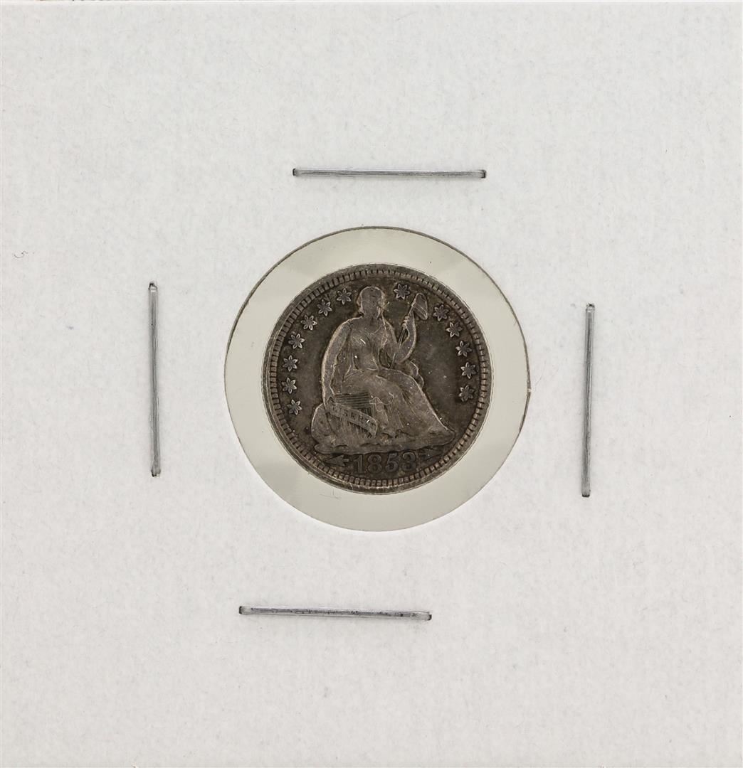 One 1853 Seated Liberty Half Dime Silver Coin.