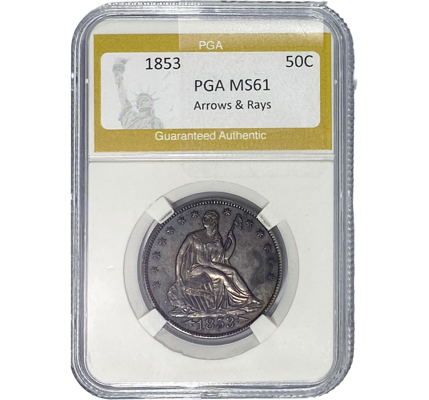1853 Seated Liberty Half Dollar PGA MS61 Arrows & Rays
