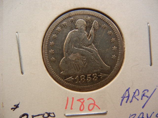 1853 Seated Liberty Quarter/Arrows & Rays VF
