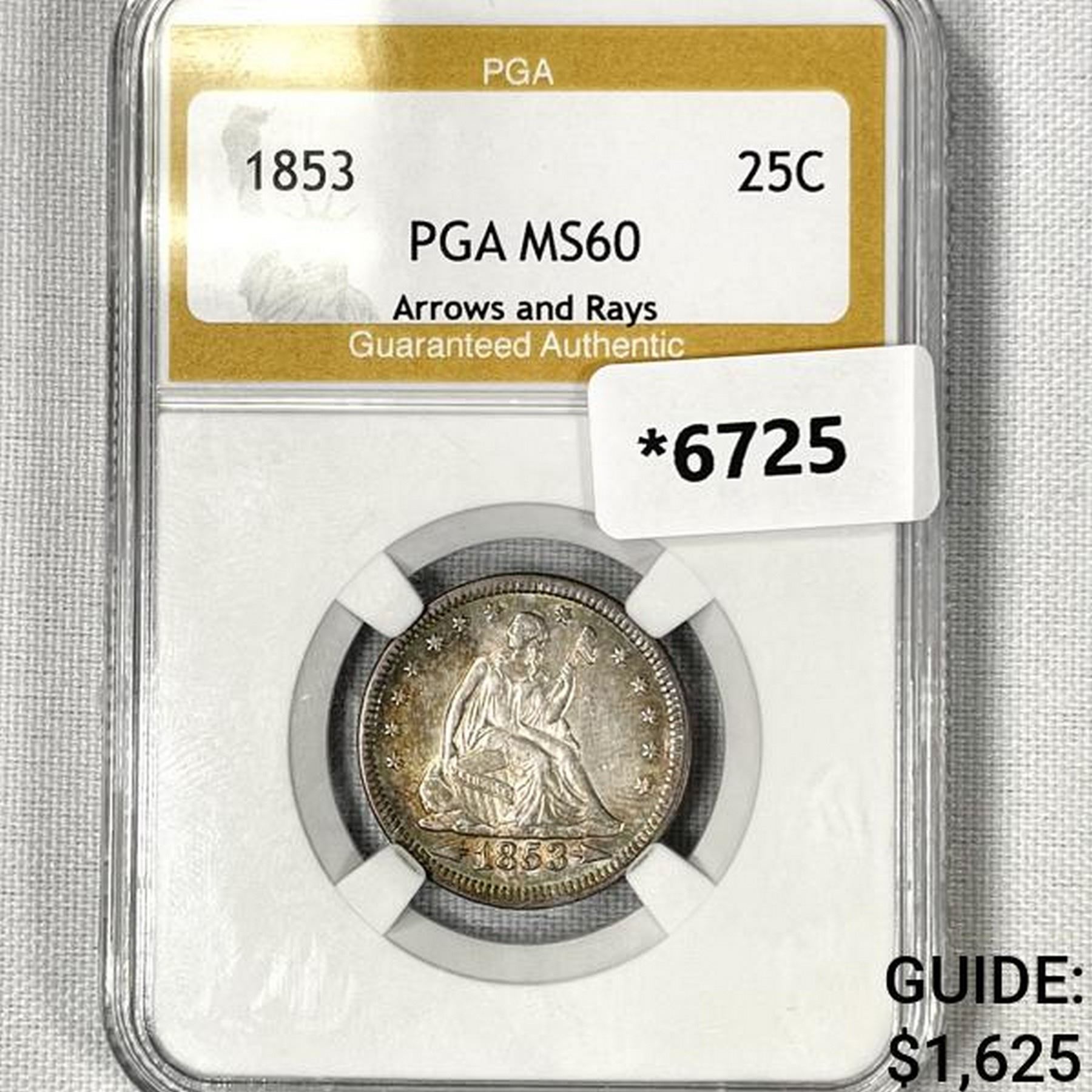 1853 Seated Liberty Quarter PGA-MS60 Arrows &