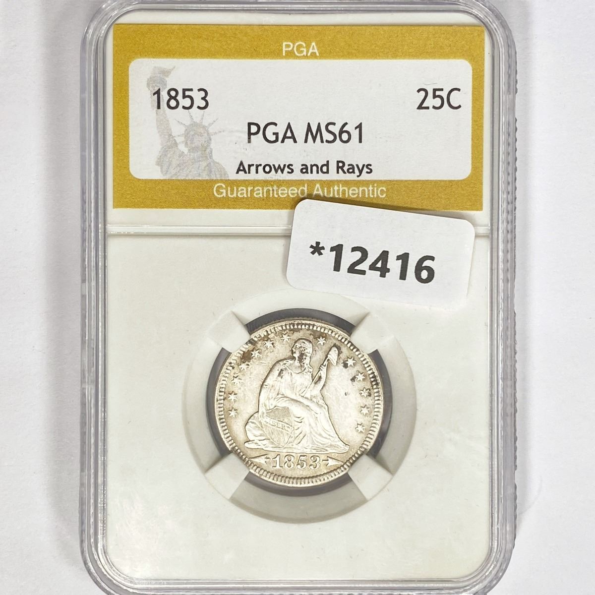 1853 Seated Liberty Quarter PGA MS61 Arrw n Ray