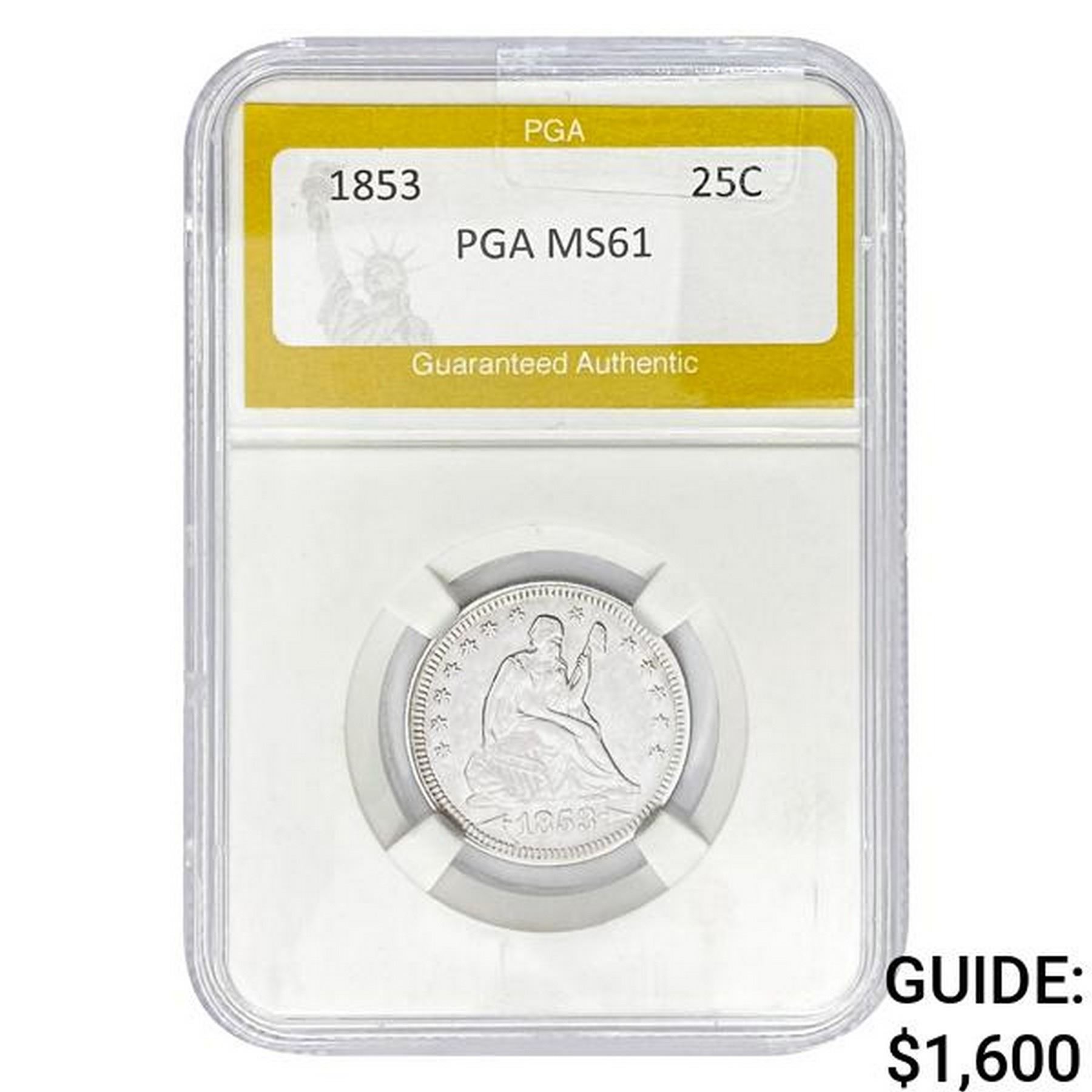 1853 Seated Liberty Quarter PGA MS61