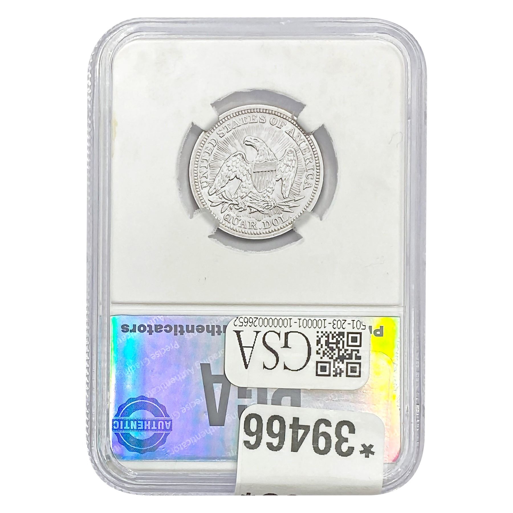 COINS AND CURRENCY LISTED IN GSA’S CATALOG AS GRADED AND ENCAPSULATED BY PCGS, NGC, ANACS, ICG, PCGS CURRENCY, PMG, PCGS BANKNOTE GRADING, CMC OR ANY OTHER THIRD-PARTY GRADING SERVICE ARE LIKEWISE SOLD “AS-IS” EXCEPT AS EXPRESSLY SET FORTH HEREIN. ALL THIRD-PARTY GRADING SERVICE GUARANTEES, INCLUDING AUTHENTICITY, ARE THE SOLE RESPONSIBILITY OF THE THIRD-PARTY GRADING SERVICE AND NOT WARRANTIES OR GUARANTEES OF GSA. BIDDERS SHOULD CONTACT THESE THIRD-PARTY GRADING SERVICES DIRECTLY WITH RESPECT TO ANY CLAIMS OR QUESTIONS THEY MAY HAVE CONCERNING THEIR GUARANTEES AND WARRANTIES. BIDDERS ACKNOWLEDGE AND AGREE THAT AUCTIONEER IS NOT BOUND BY OR LIABLE FOR ANY OPINION OR CERTIFICATION BY ANY THIRD-PARTY GRADING SERVICE. REMOVAL OF A PRODUCT FROM ITS PROTECTIVE CASING OR HOLDER OR ALTERATION OF ANY COIN HOLDER WAIVES ALL RIGHTS CONCERNING THE PRODUCT CONTAINED THEREIN.