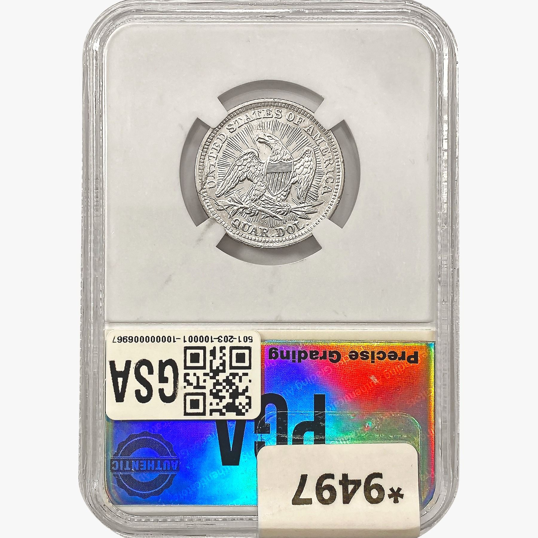 1853 Seated Liberty Quarter PGA MS62+ Arws & Rays