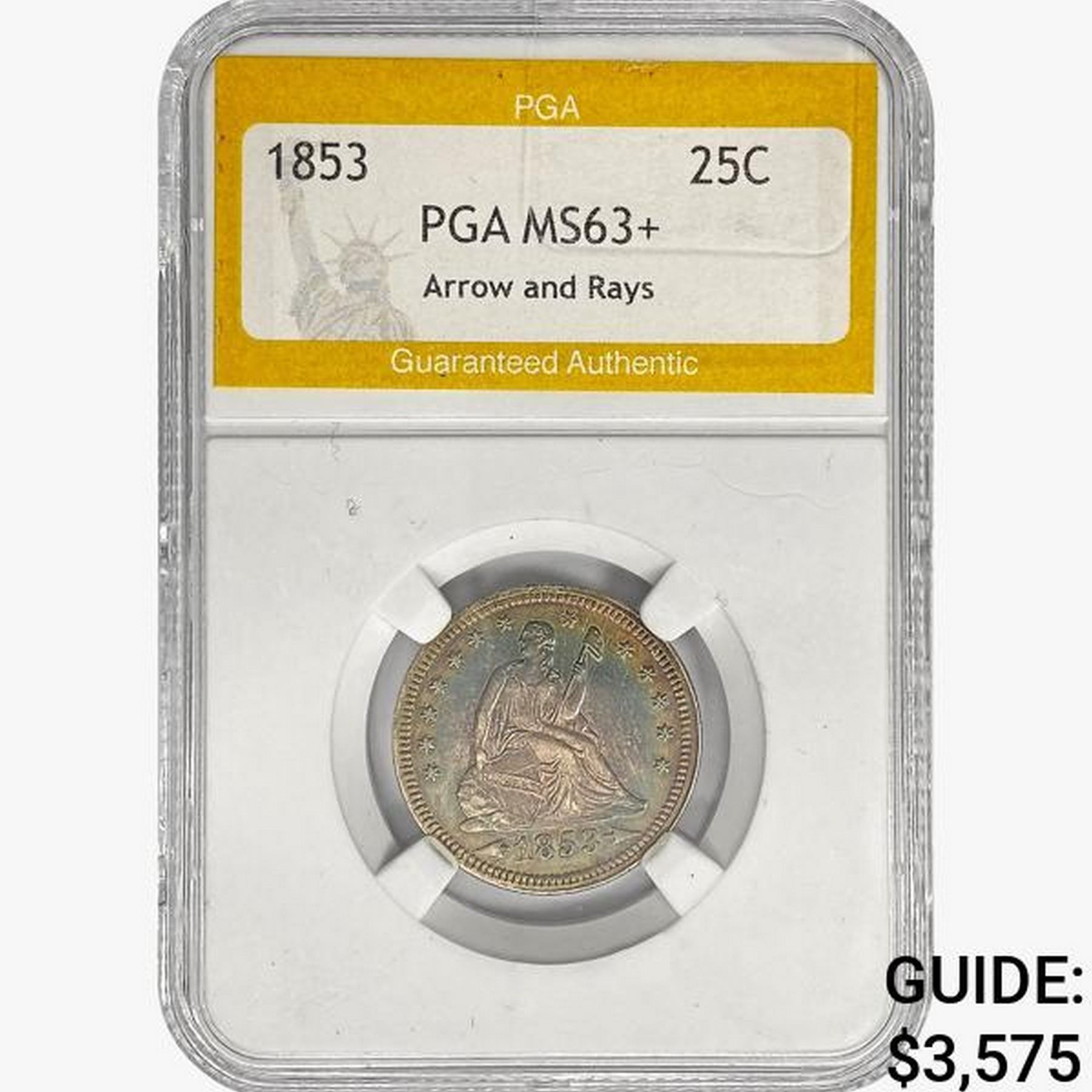 1853 Seated Liberty Quarter PGA MS63+ Arws & Rays