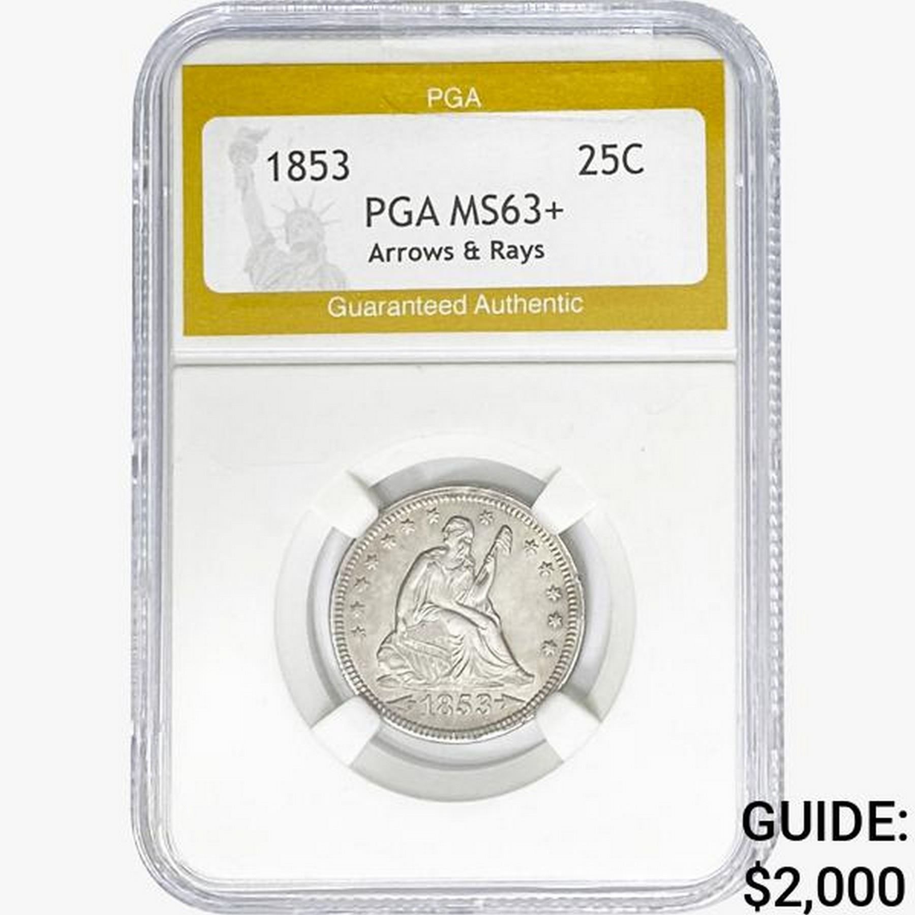 1853 Seated Liberty Quarter PGA MS63+