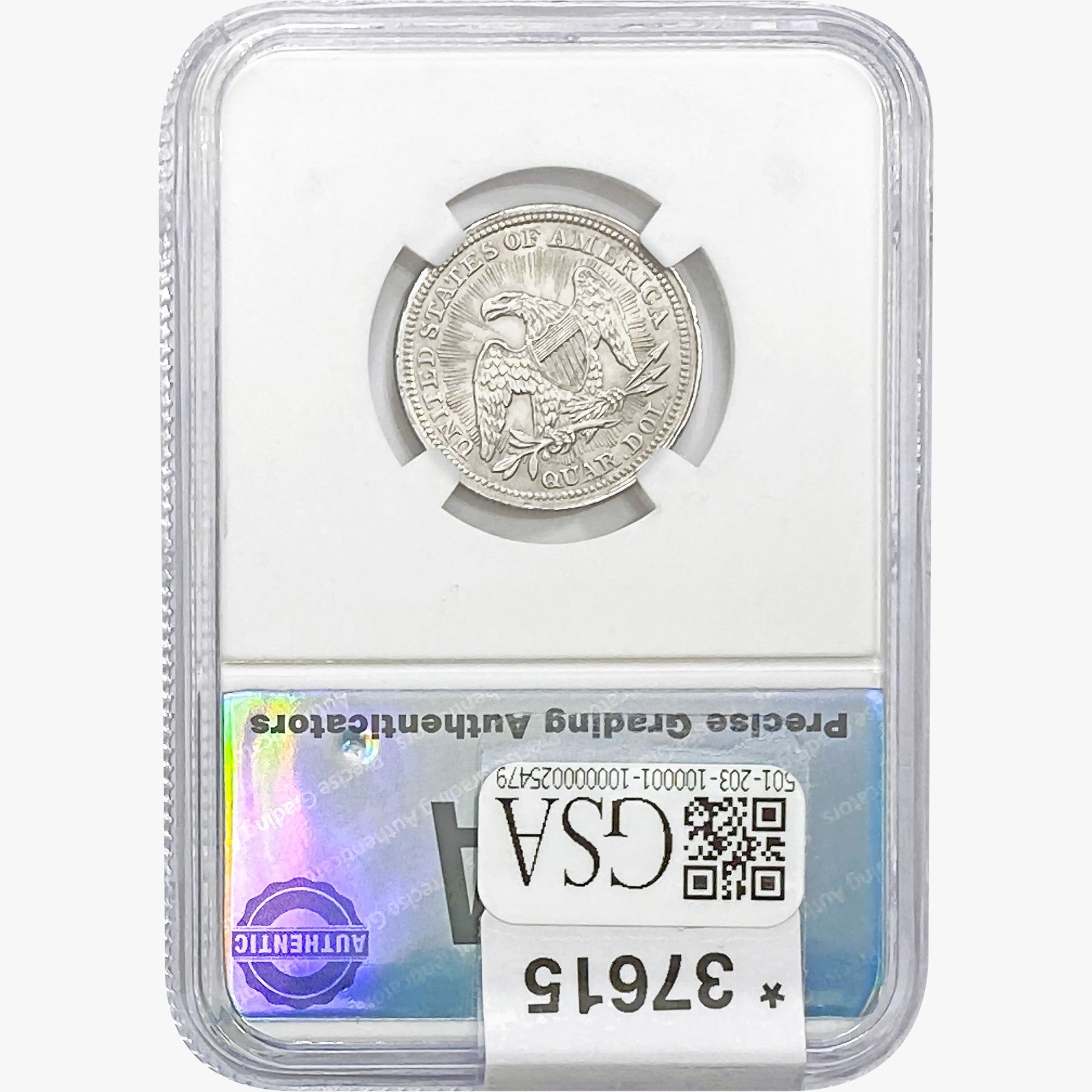 COINS AND CURRENCY LISTED IN GSA’S CATALOG AS GRADED AND ENCAPSULATED BY PCGS, NGC, ANACS, ICG, PCGS CURRENCY, PMG, PCGS BANKNOTE GRADING, CMC OR ANY OTHER THIRD-PARTY GRADING SERVICE ARE LIKEWISE SOLD “AS-IS” EXCEPT AS EXPRESSLY SET FORTH HEREIN. ALL THIRD-PARTY GRADING SERVICE GUARANTEES, INCLUDING AUTHENTICITY, ARE THE SOLE RESPONSIBILITY OF THE THIRD-PARTY GRADING SERVICE AND NOT WARRANTIES OR GUARANTEES OF GSA. BIDDERS SHOULD CONTACT THESE THIRD-PARTY GRADING SERVICES DIRECTLY WITH RESPECT TO ANY CLAIMS OR QUESTIONS THEY MAY HAVE CONCERNING THEIR GUARANTEES AND WARRANTIES. BIDDERS ACKNOWLEDGE AND AGREE THAT AUCTIONEER IS NOT BOUND BY OR LIABLE FOR ANY OPINION OR CERTIFICATION BY ANY THIRD-PARTY GRADING SERVICE. REMOVAL OF A PRODUCT FROM ITS PROTECTIVE CASING OR HOLDER OR ALTERATION OF ANY COIN HOLDER WAIVES ALL RIGHTS CONCERNING THE PRODUCT CONTAINED THEREIN.