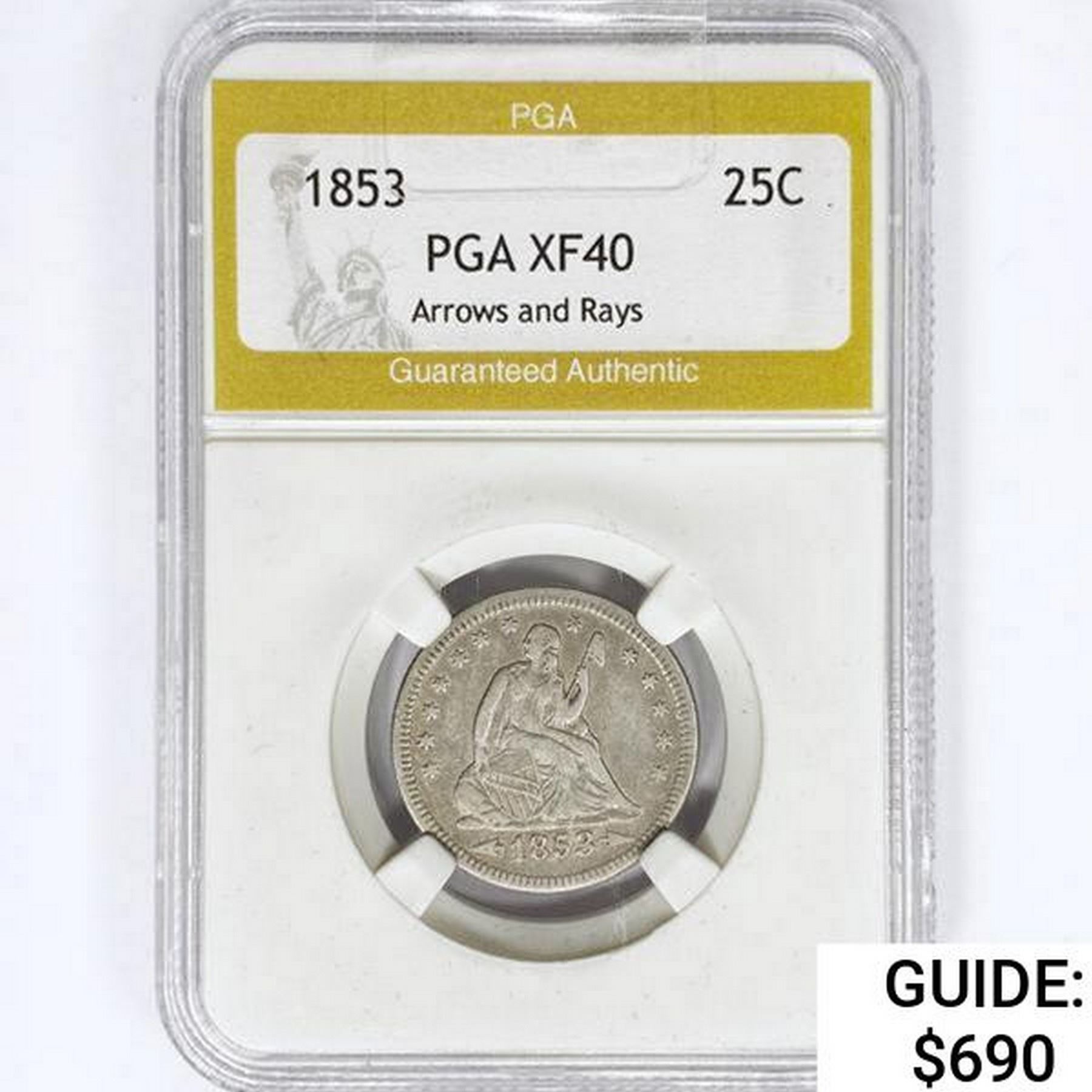 1853 Seated Liberty Quarter PGA XF40 Arrows & Rays