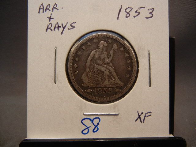 1853 Seated Liberty Quarter, w/ Arrows and Rays