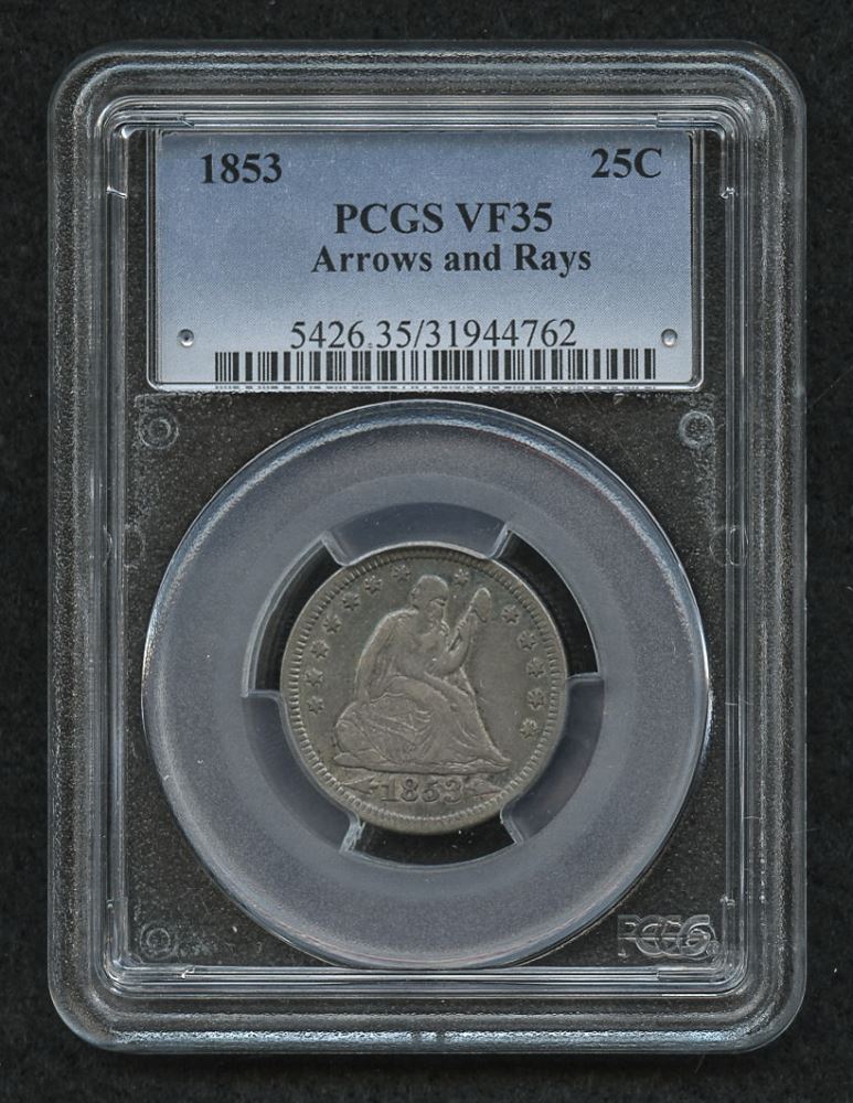 The Seated Liberty portrait designs, used during the mid to late 19th century from 1836 through 1891, appeared on most regular issue silver United States coinage. Denominations of coins that featured the Seated Liberty design included the half dime, the dime, the quarter, and until 1873 the silver dollar. From 1875 through 1878 the twenty cent piece (the only denomination of it's kind) appeared exclusively with the Seated Liberty design.