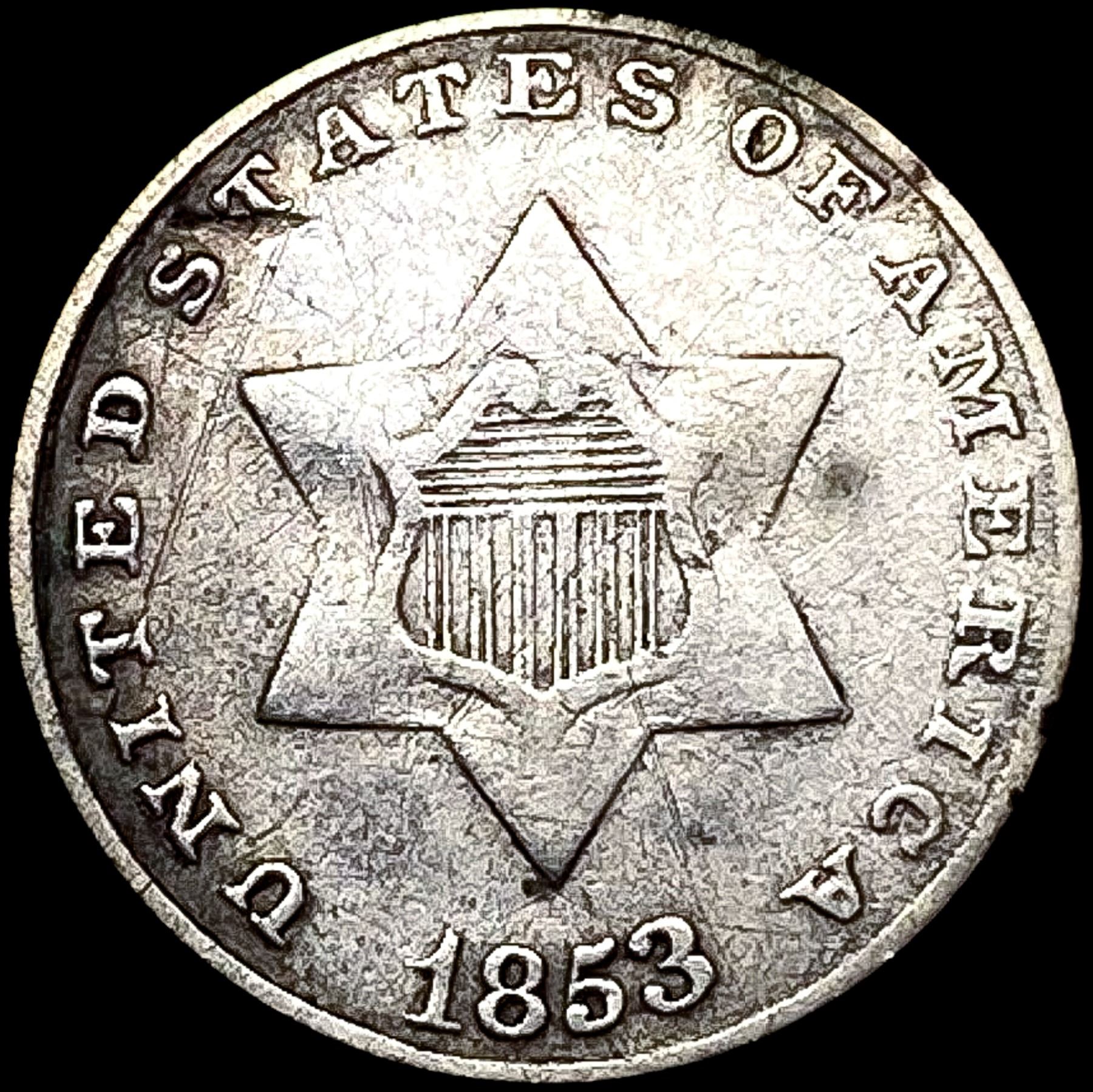 1853 Silver Three Cent CLOSELY UNCIRCULATED