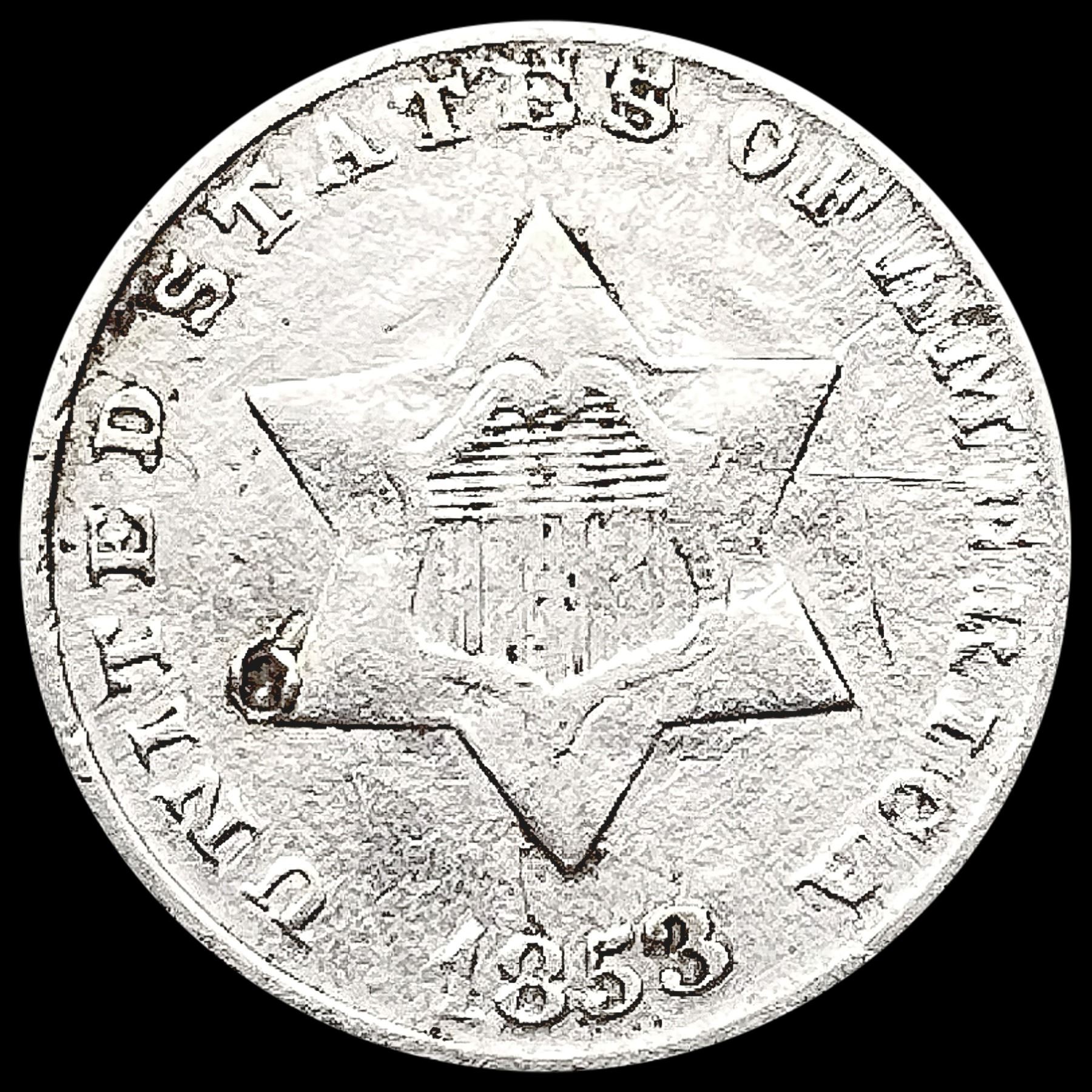 1853 Silver Three Cent CLOSELY UNCIRCULATED