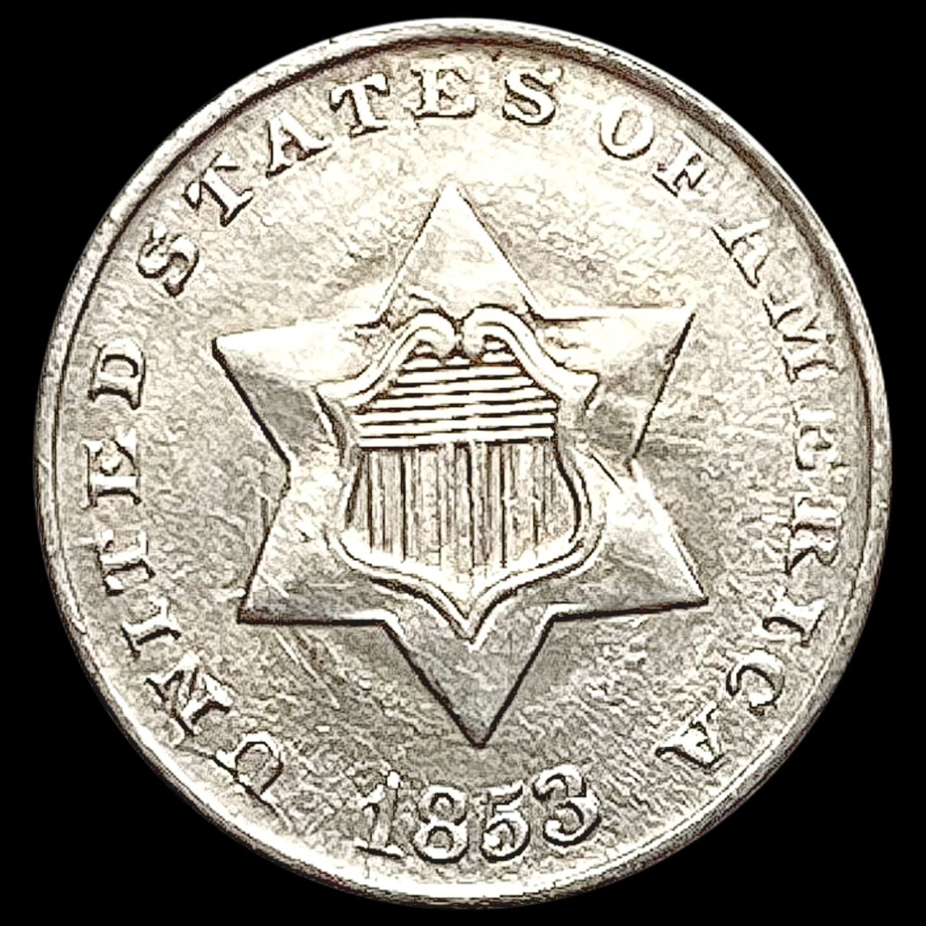 1853 Silver Three Cent CLOSELY UNCIRCULATED