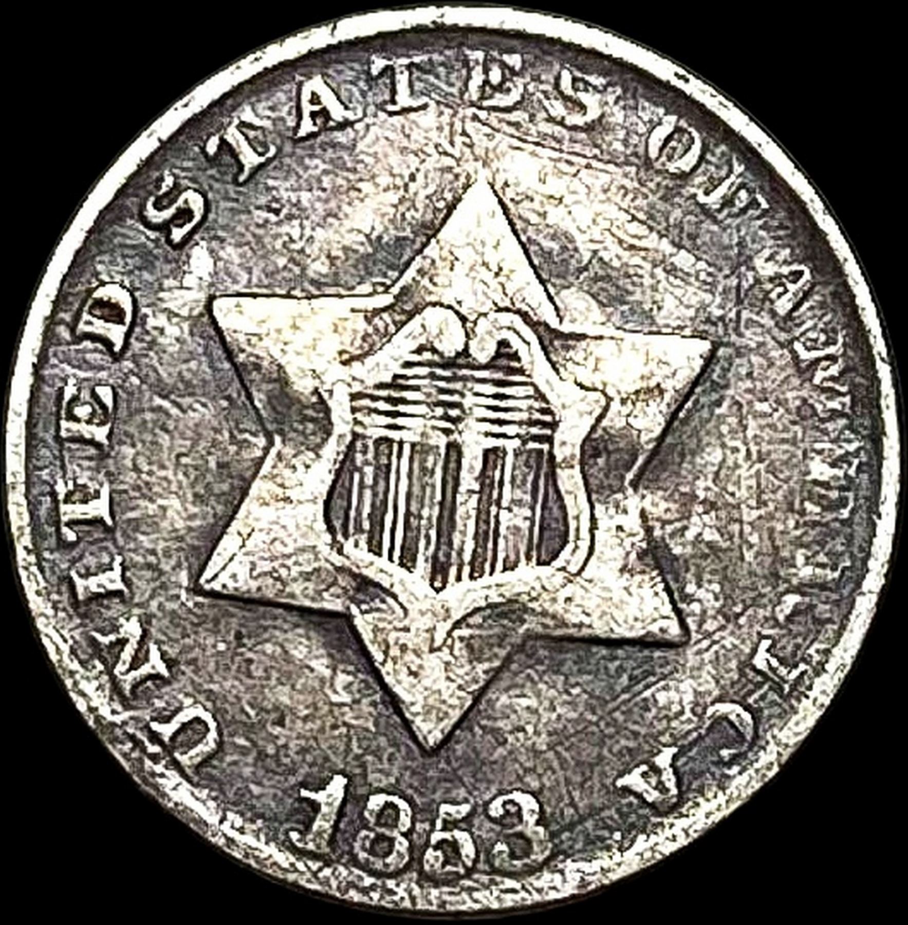 1853 Silver Three-Cent Piece LIGHTLY CIRCULATED