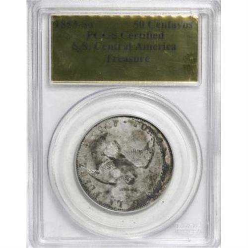 <B>1853-So Chile 50 Centavos. Close to Mint State.</B></I> PCGS has certified this piece from the <I>S.S. Central America </B></I>Treasure, but left it ungraded, so our grade opinion is merely a guide line. It is actually very close to a full Mint State piece, but the reaction of the silver and its copper alloy in saltwater for nearly 150 years left the surfaces corroded in spots. The overall surfaces have unusual toning with lighter silver and dark steel or ebony. It is a part of the famous treasure, and certainly much more obtainable for those of modest means, than would be a Mint State double eagle or massive gold ingot.<BR><BR><b>Shipping:</b> Coins & Currency (<a target="_blank" href="http://www.heritageauctions.com/common/shipping.php">view shipping information</a>)