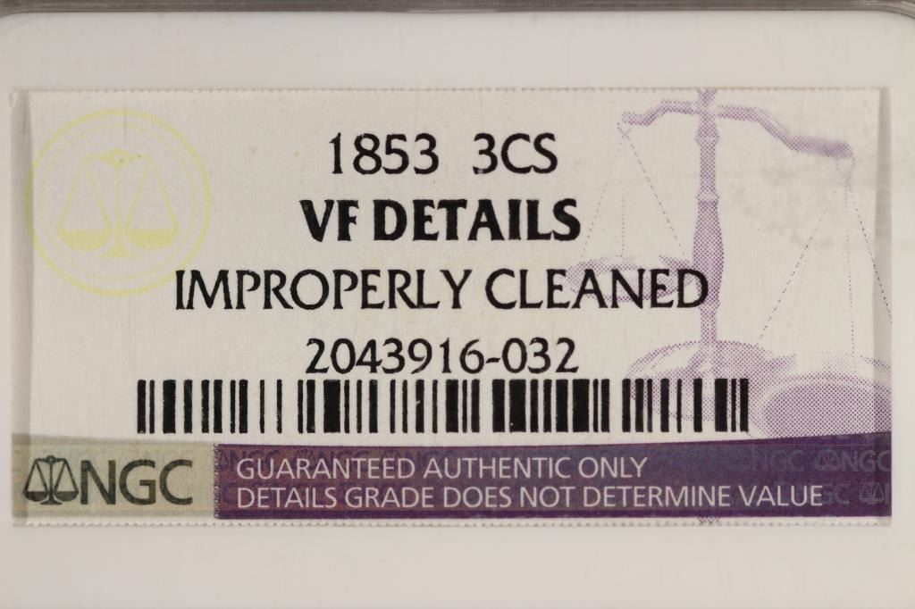 1853 THREE CENT PIECE (SILVER) NGC VF DETAILS