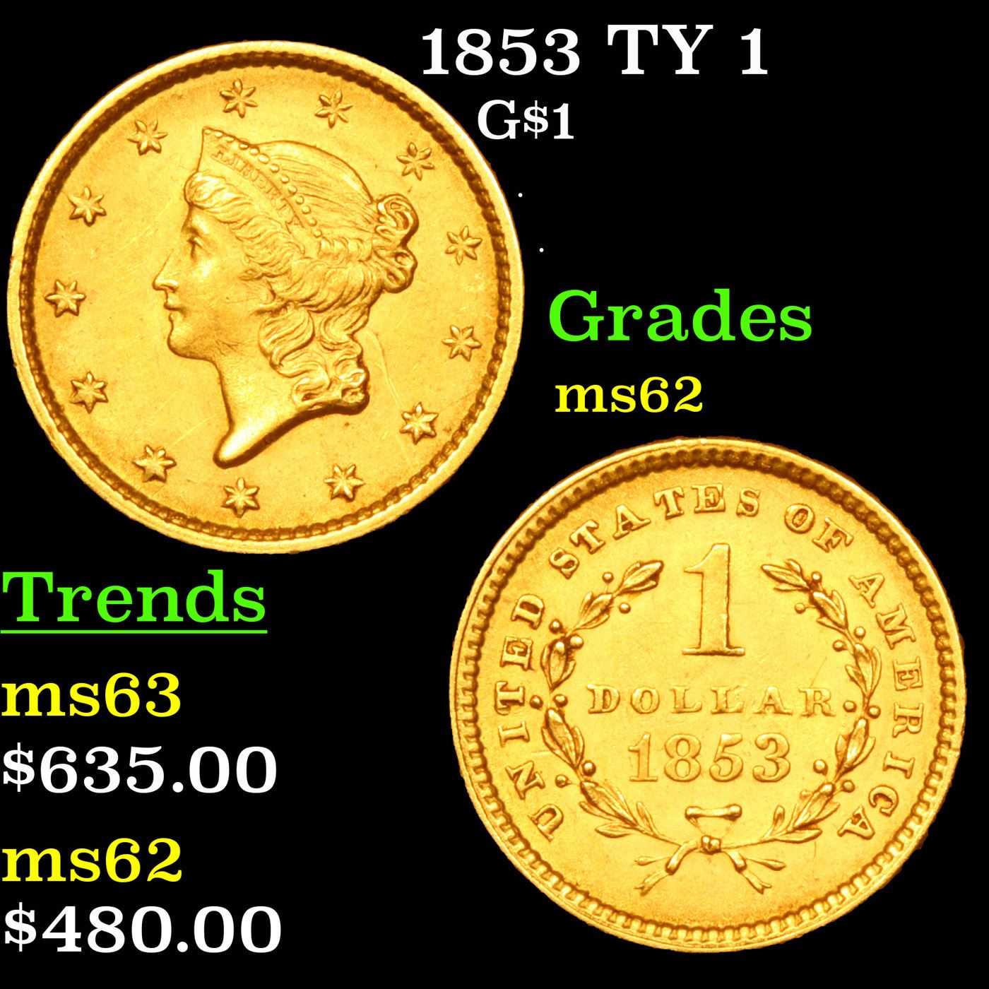 1853 TY 1 Gold Dollar $1 Grades Select Unc.