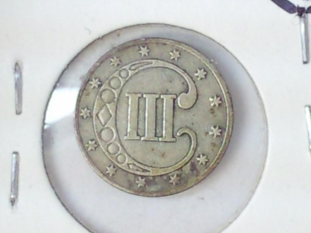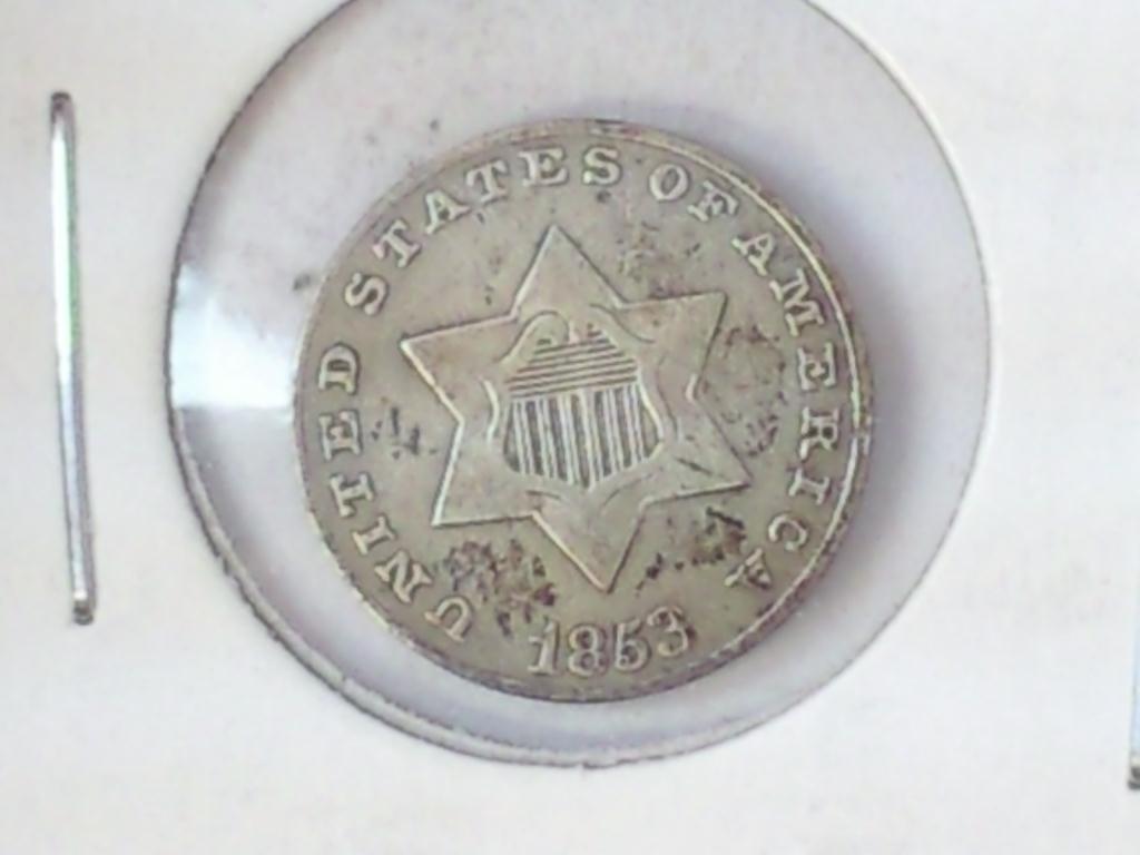 1853 TYPE 1 THREE CENT PIECE (SILVER) (VERY FINE)