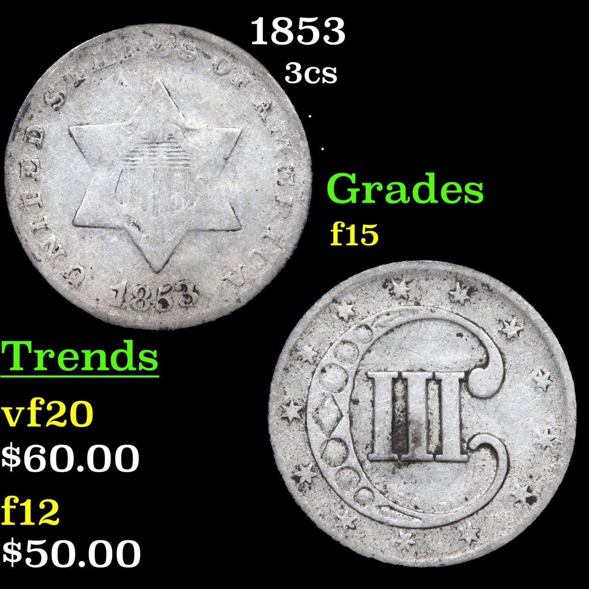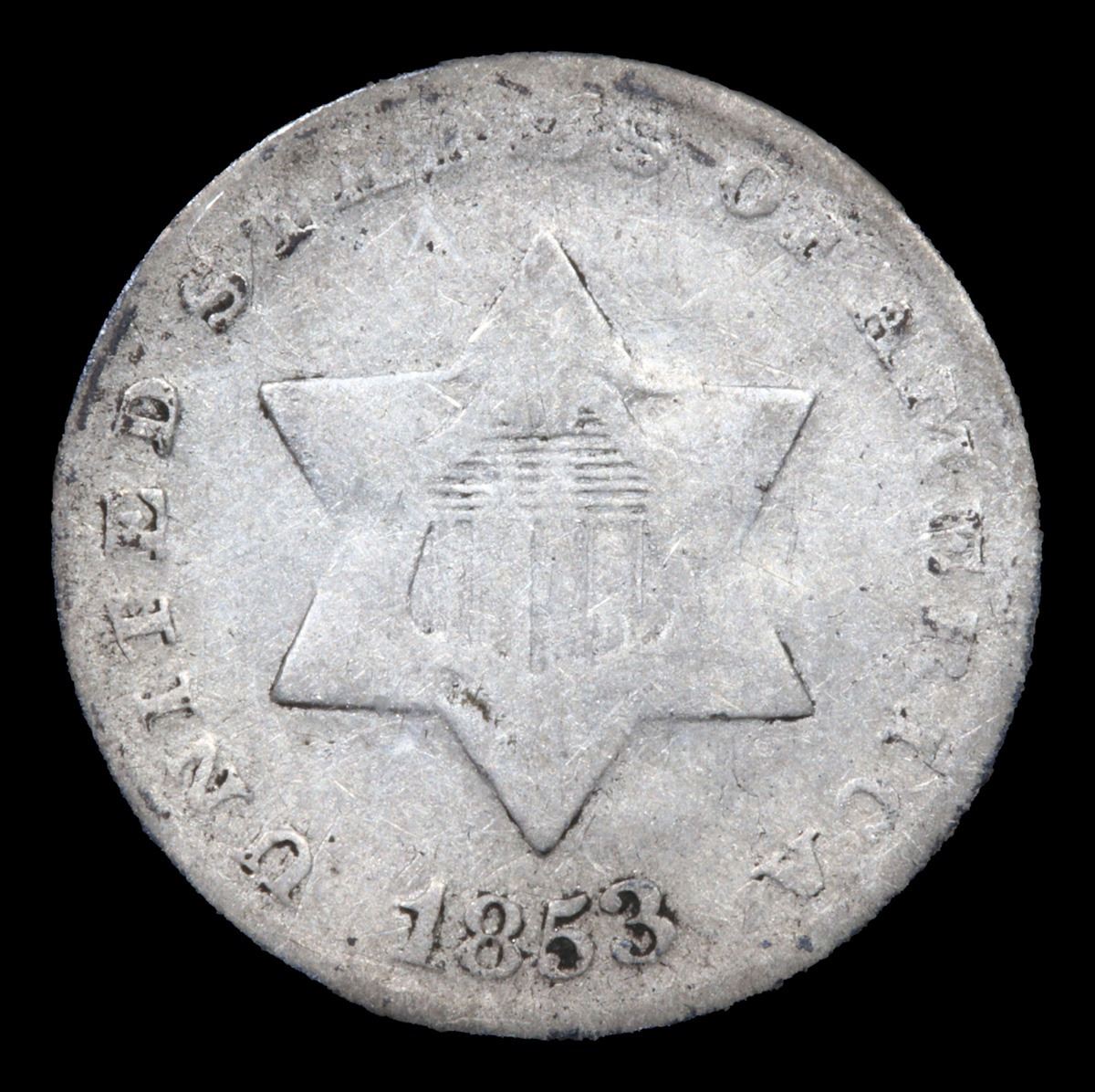 1853 . . Three Cent Silver 3cs Grades f+.