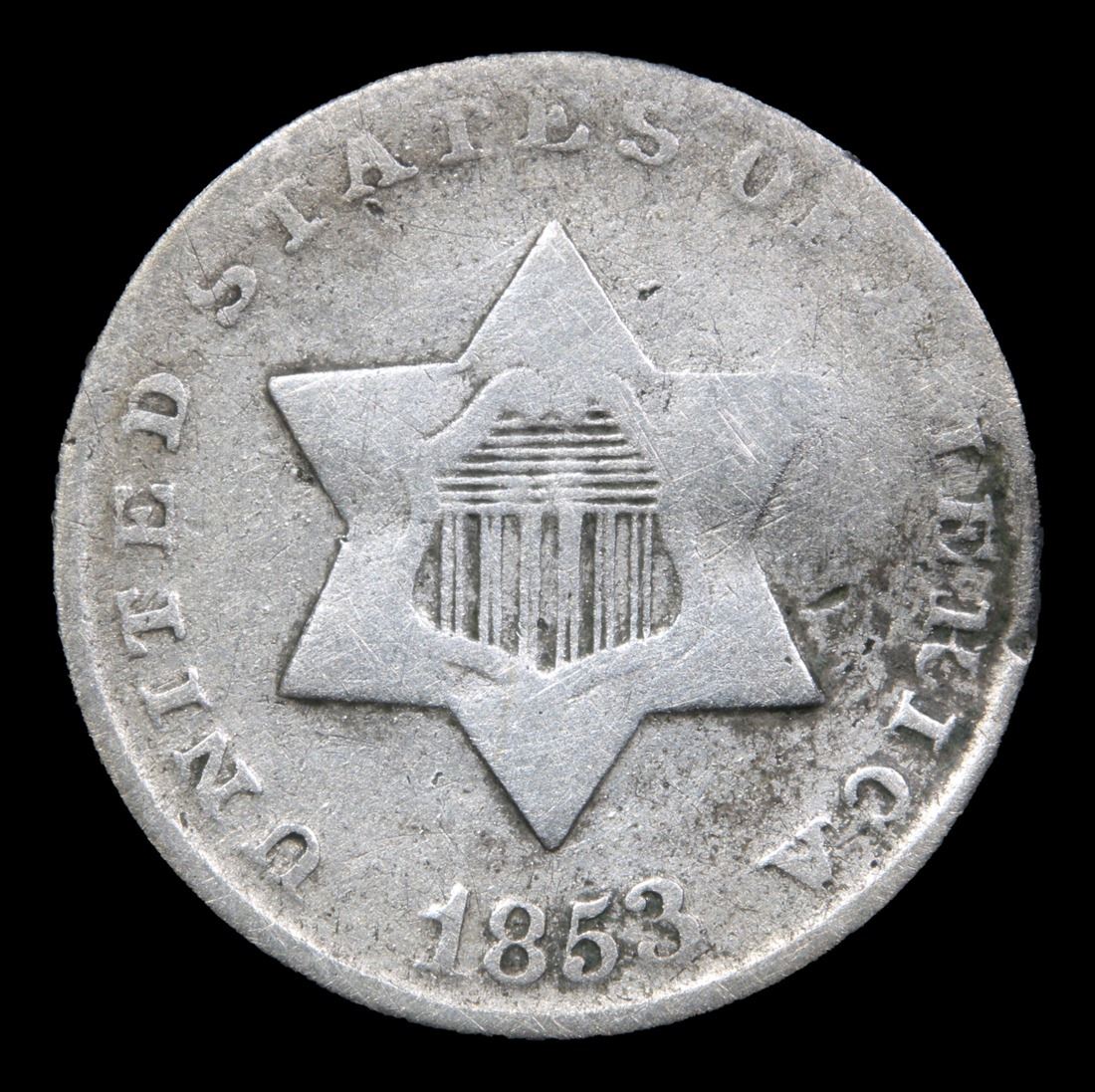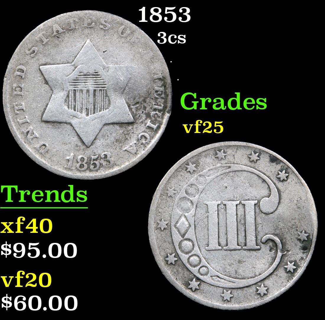 1853 . . Three Cent Silver 3cs Grades vf+.