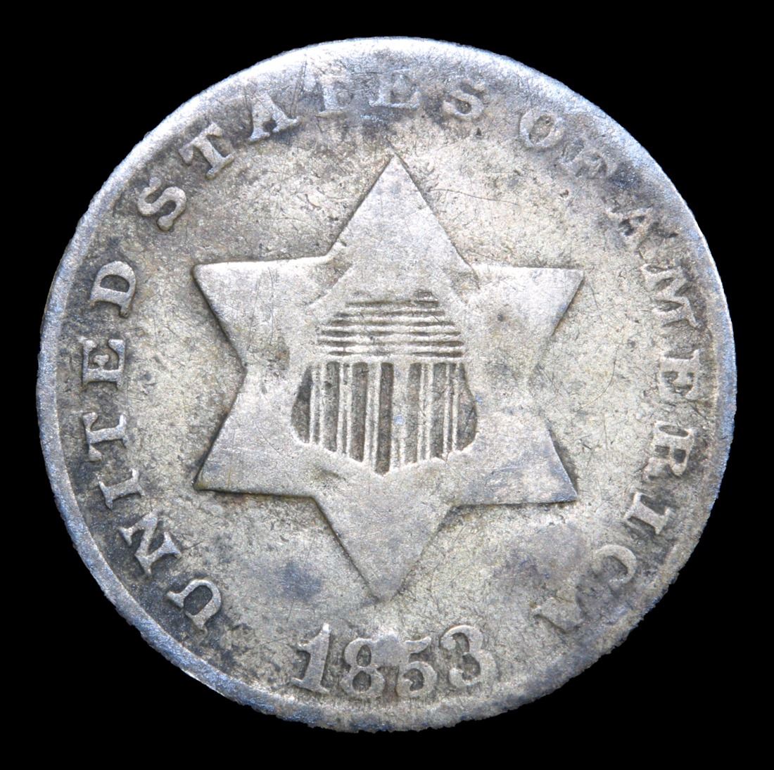 1853 Three Cent Silver 3cs Grades vf++.