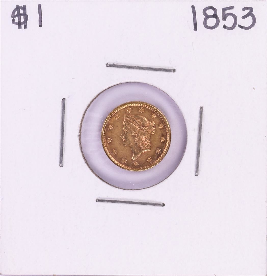 One 1853 Type 1 $1 Liberty Head Gold Dollar Coin.