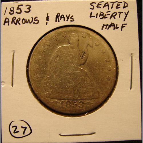 1853 U.S. SEATED LIBERTY HALF DOLLAR. Arrows & Rays.