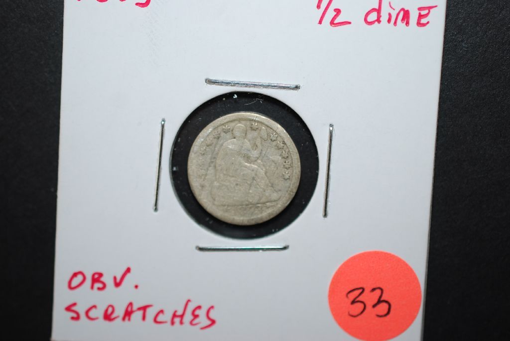 1853 US Seated Liberty Half Dime With Arrows & Obv. & Rev. Scratches; EST. $5-10