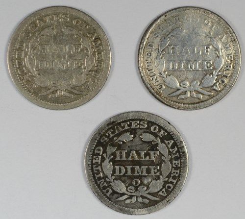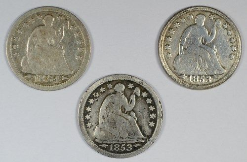 1853 VG (DAMAGED), 1853-O VG (DAMAGED), & 1854 SEATED HALF DIME
