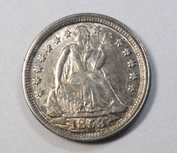 1853 arrows Seated dime AU