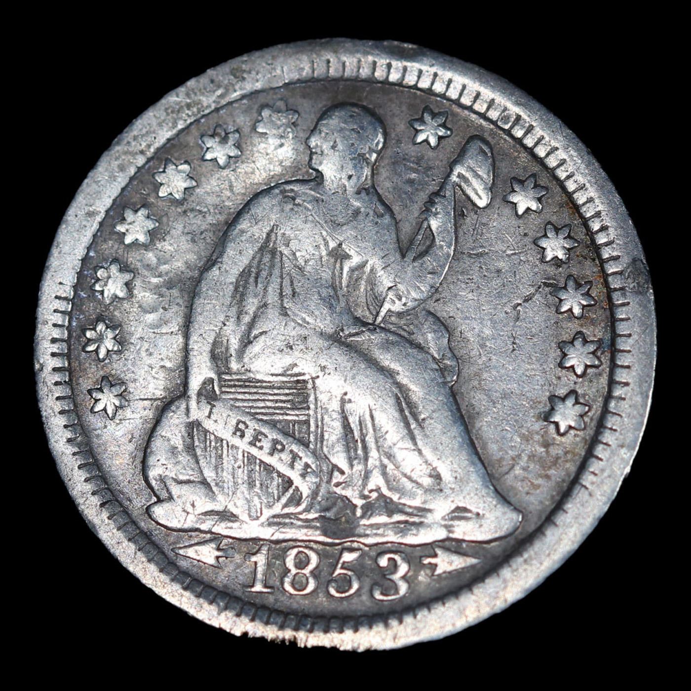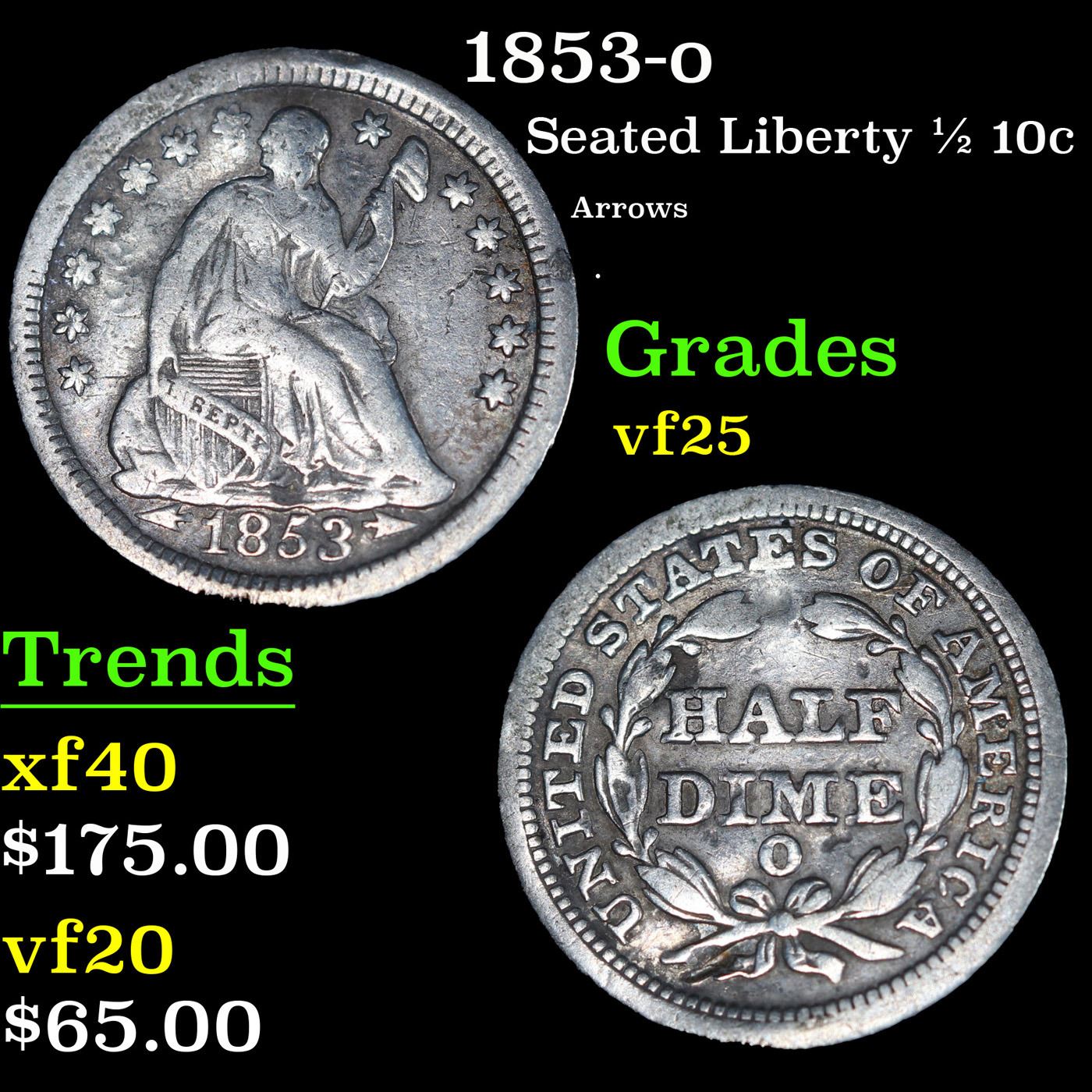 1853-o Seated Liberty Half Dime 1/2 10c Grades vf+.
