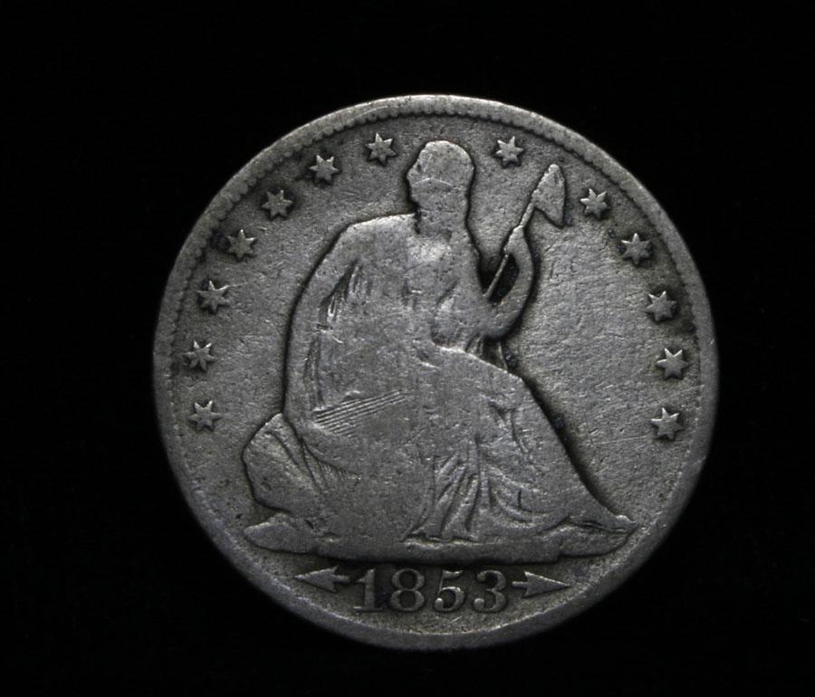This Seated Half is a one year type coin, Arrows and Rays and grades Very Good, VG…..Isn't it odd that in our hobby, Very good means not so good, Doesn't it make you feel a little like the guys who made up the original grading names may have been biased coin dealers???? Just a thought I get when I have to say, "I think this coin is a 'Very Good'. anyway. Estimated Value $29, that's wholesale greysheet bid.