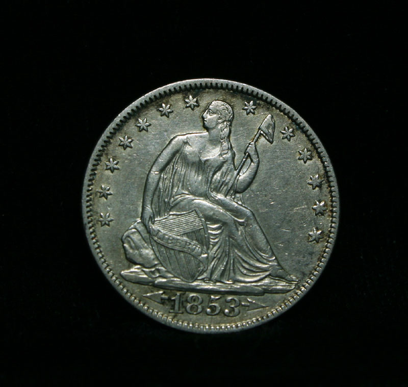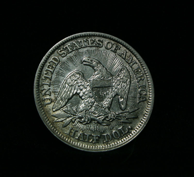This Seated Half is a one year type coin, Arrows and Rays. Nice example with great detail. Pleasing look. Coin World's Coin Values lists au55 at $850 and The Wholesale Greysheet lists au50 at $465 and ms60 at $1150 Estimated Value $600