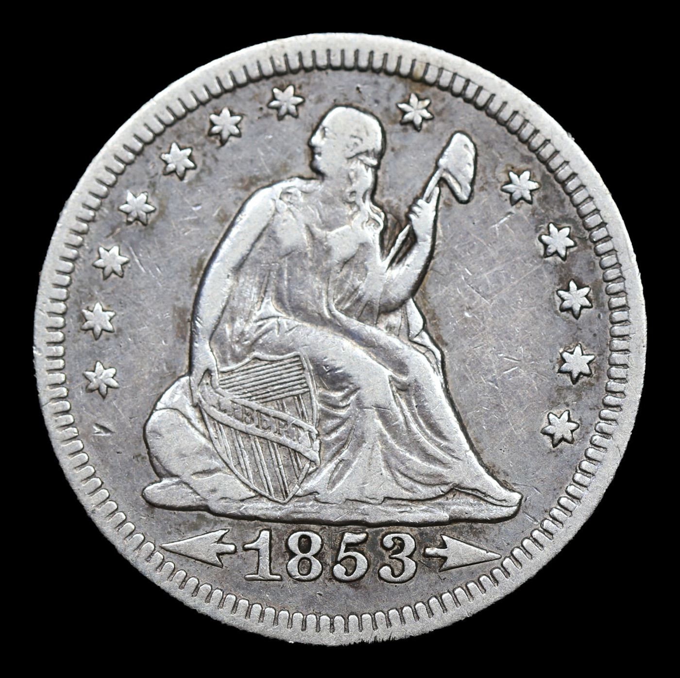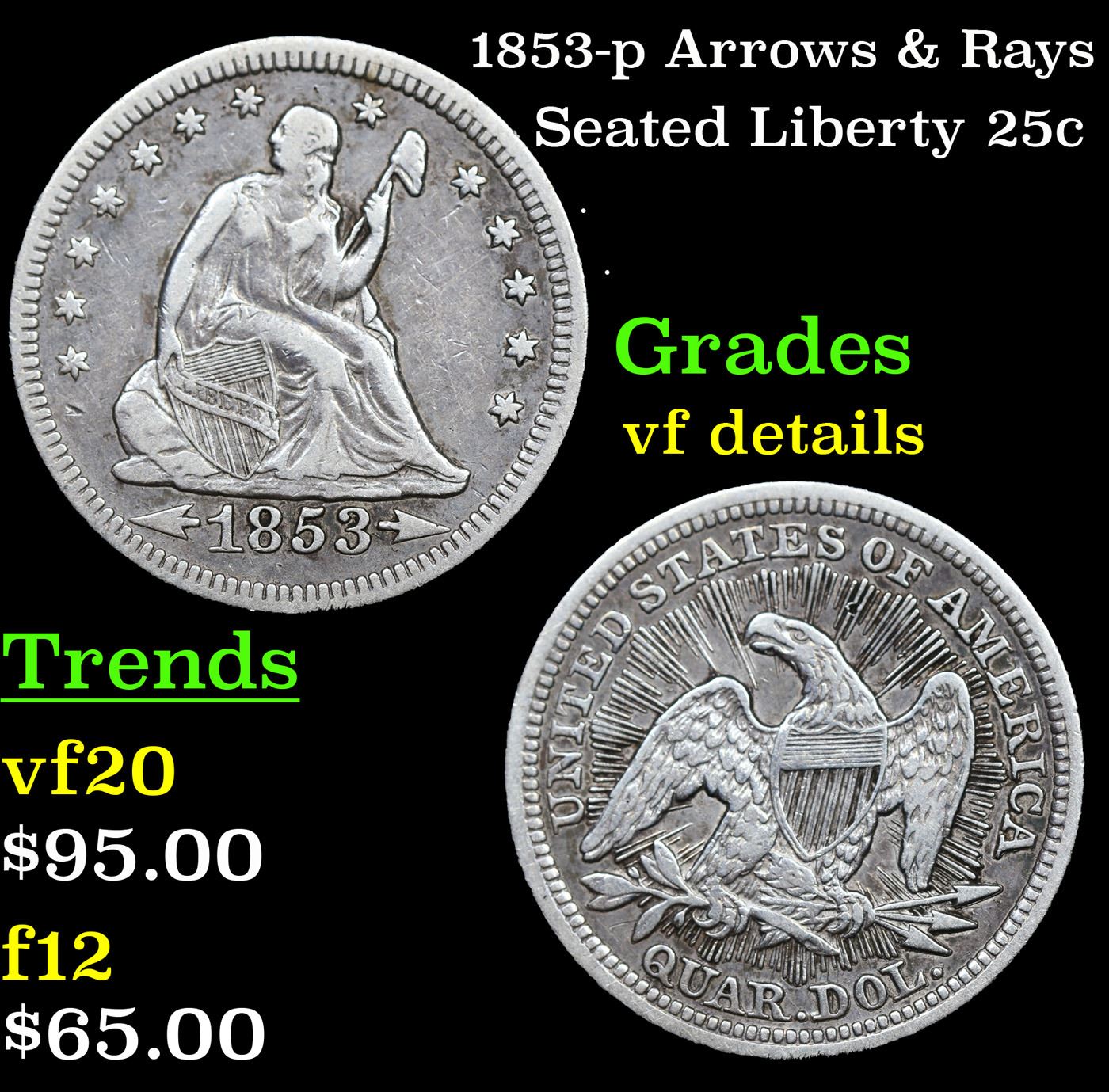 1853-p Arrows & Rays Seated Liberty Quarter 25c Grades vf details.