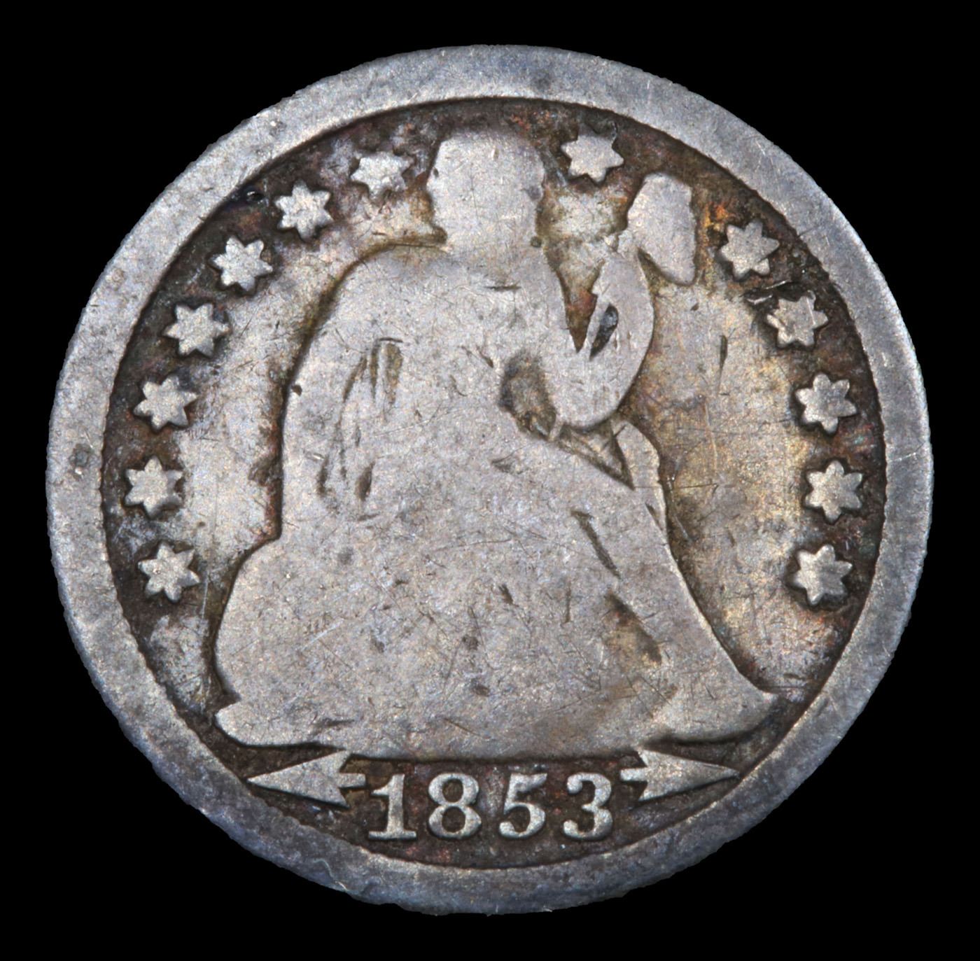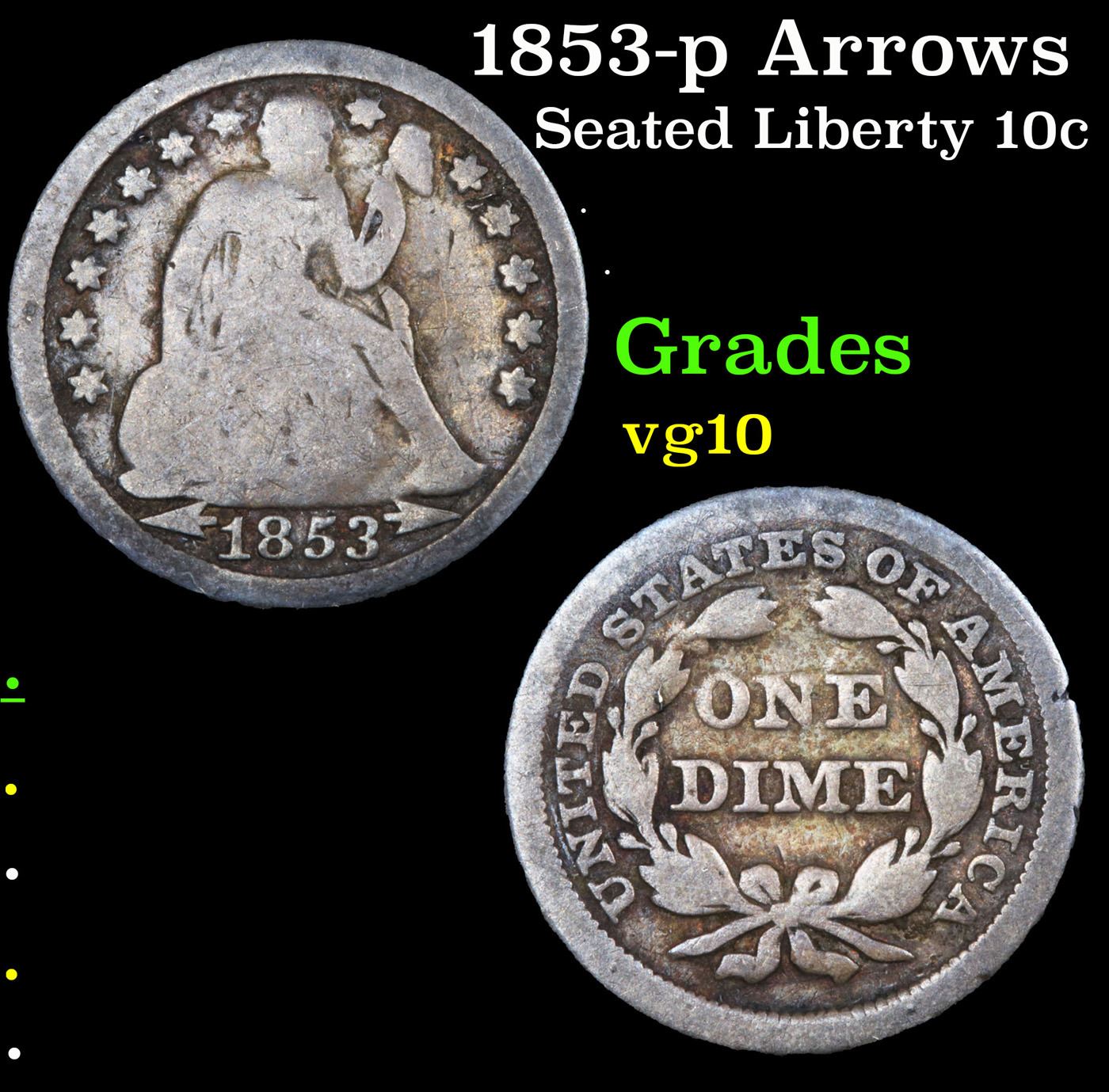 1853-p Arrows Seated Liberty Dime 10c Grades vg+.