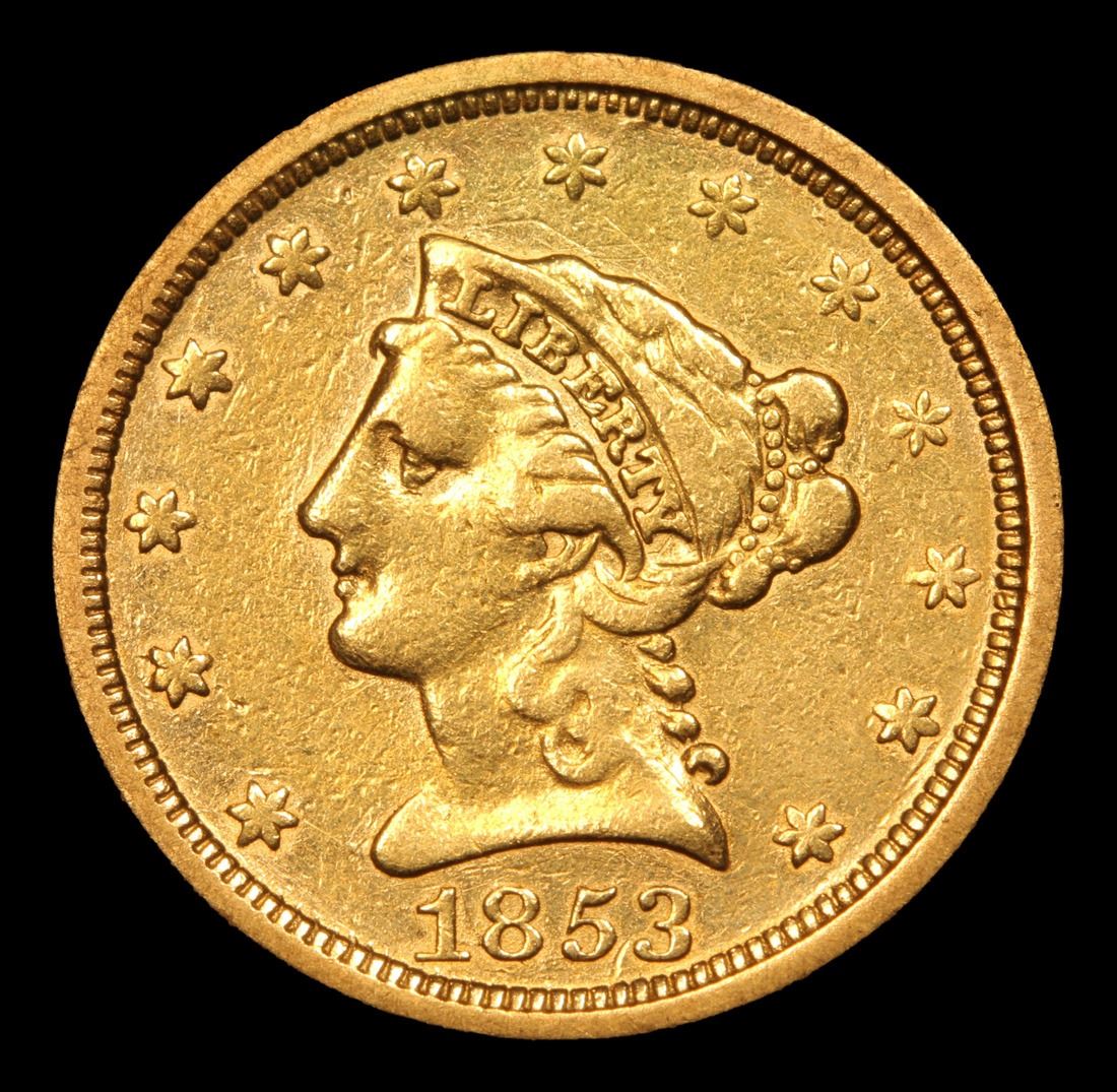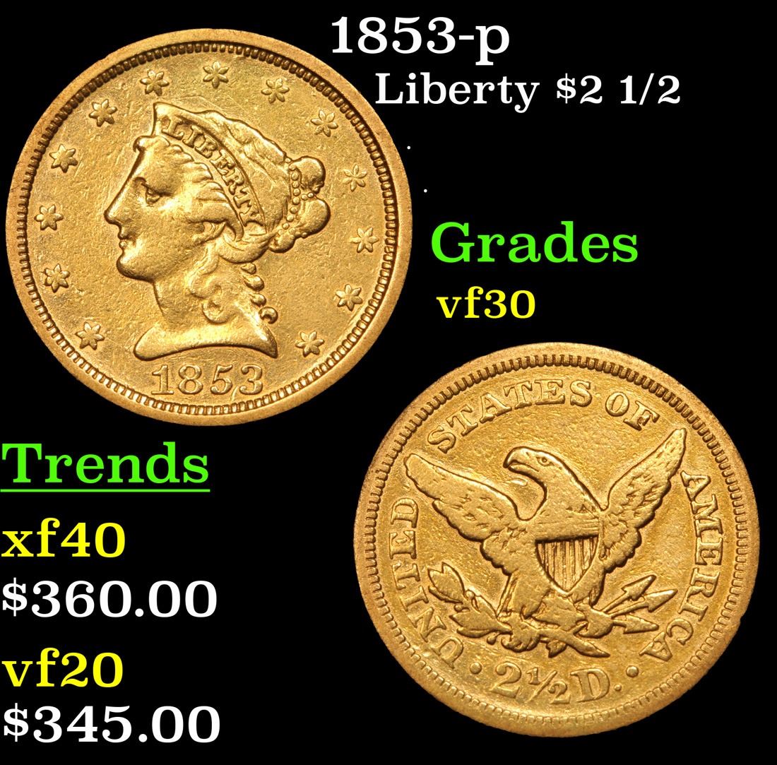 1853-p . . Gold Liberty Quarter Eagle $2 1/2 Grades vf++.