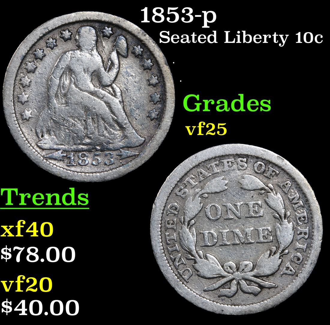 1853-p . . Seated Liberty Dime 10c Grades vf+.