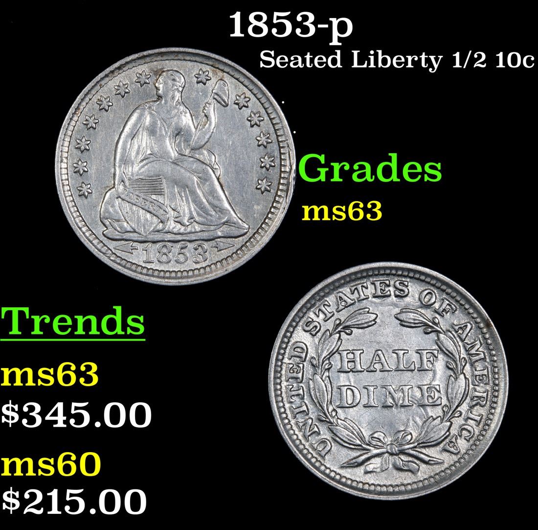 1853-p . . Seated Liberty Half Dime 1/2 10c Grades Select Unc. A Corey's Pick, Bid to Win Coin