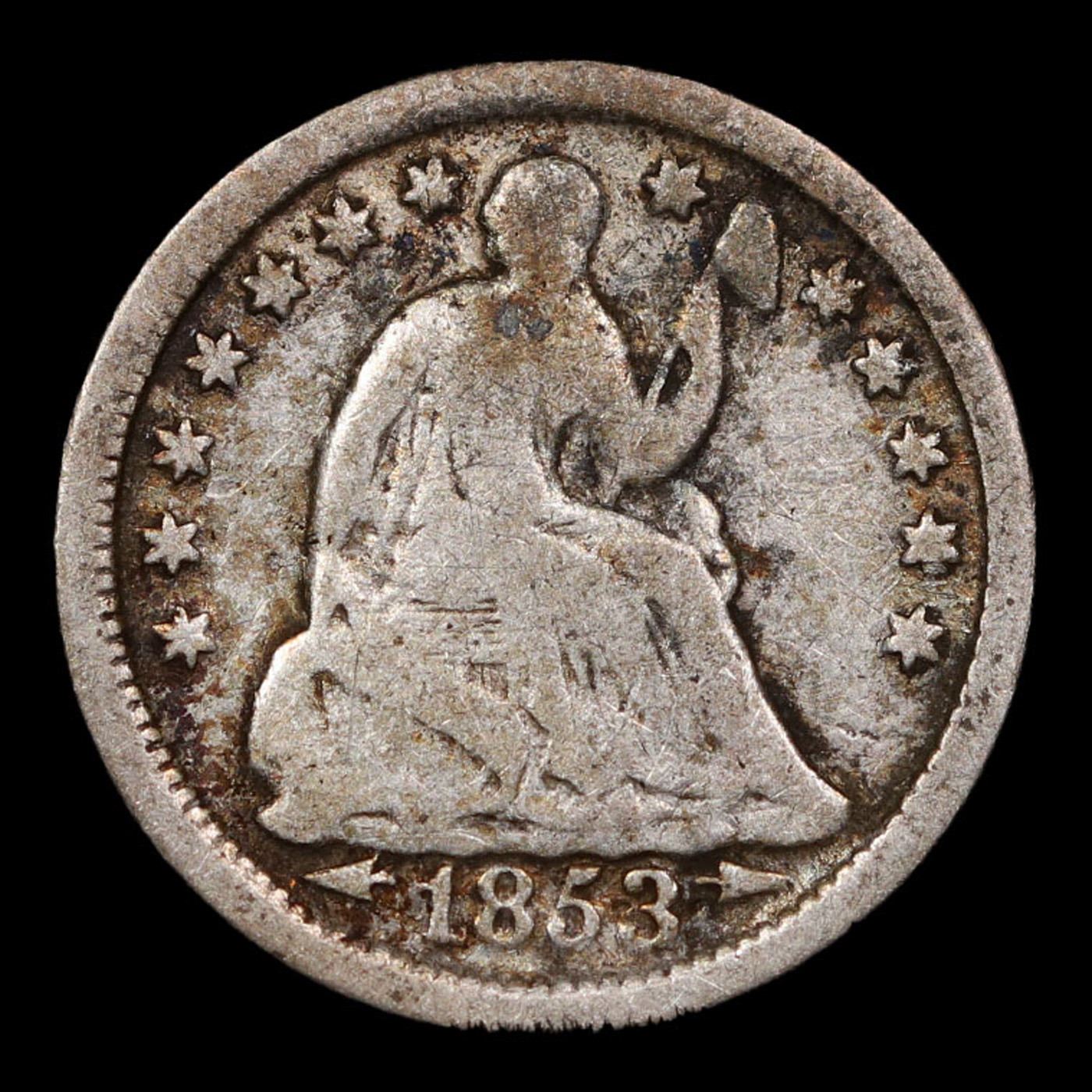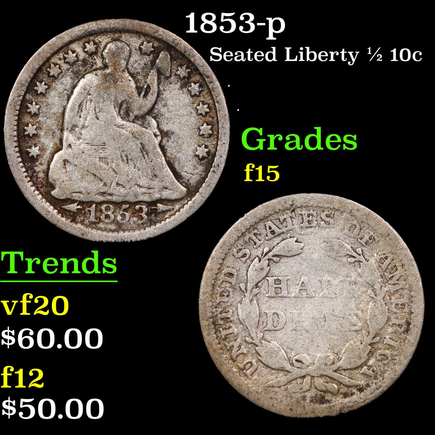 1853-p Seated Liberty Half Dime 1/2 10c Grades f+.